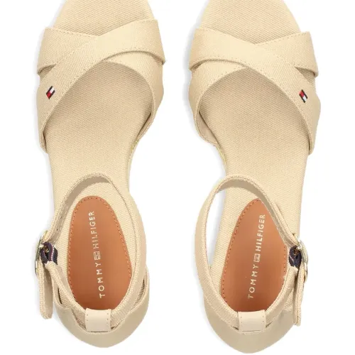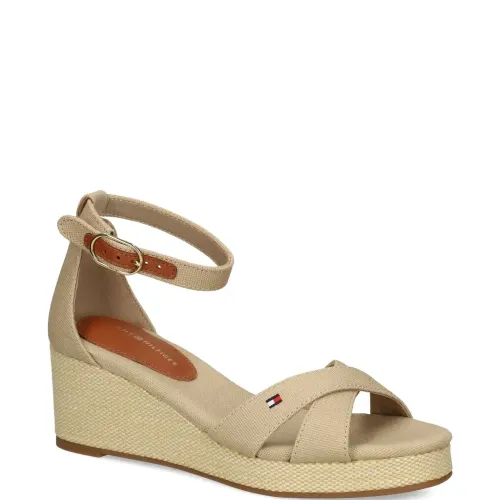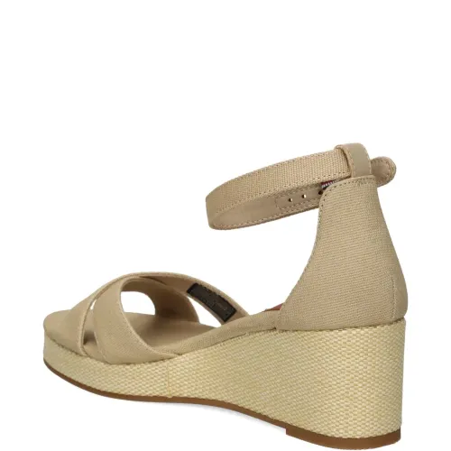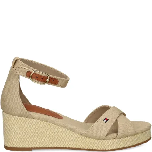 Босоножки из канваса на танкетке