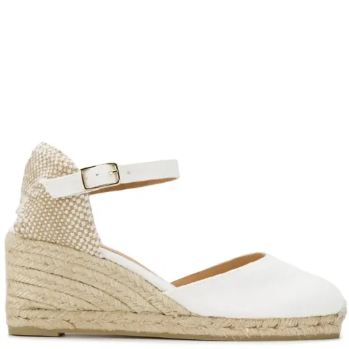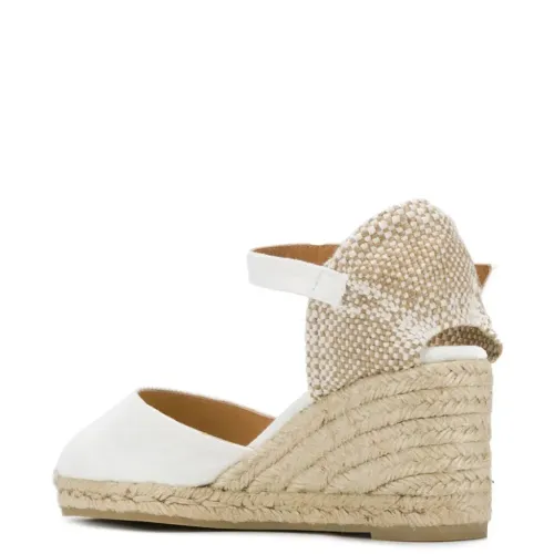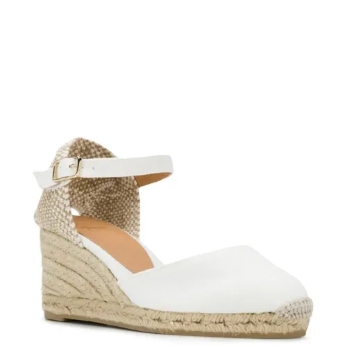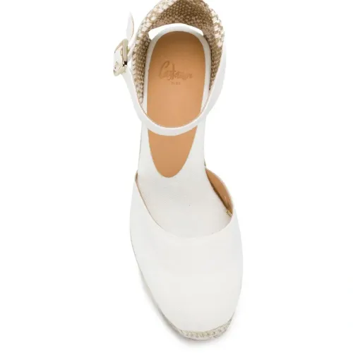 Босоножки Carol на танкетке от Castañer. Закругленный носок, фирменная стелька, ремешок на щиколотке и пряжка сбоку и каблук-танкетка. Цвет: белый.