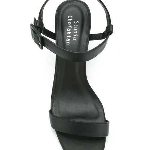 Черные кожаные босоножки на наборном каблуке от STUDIO CHOFAKIAN.