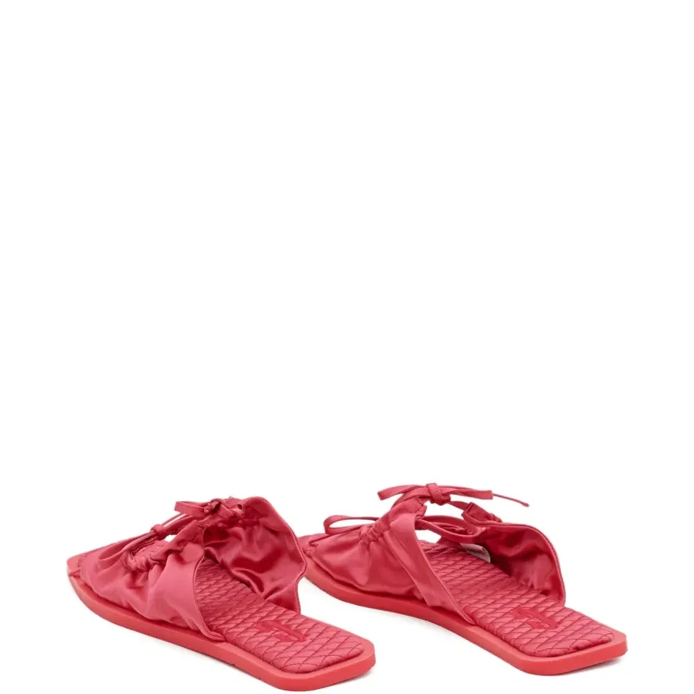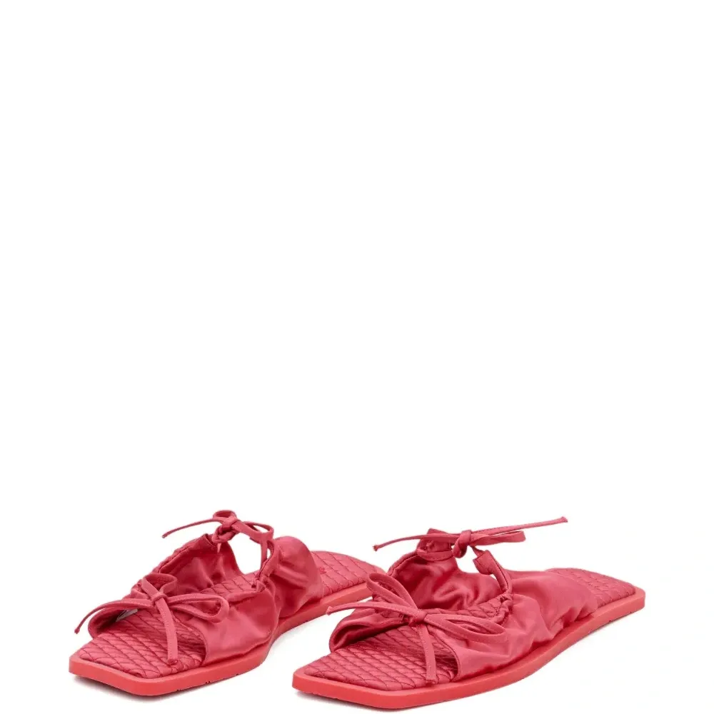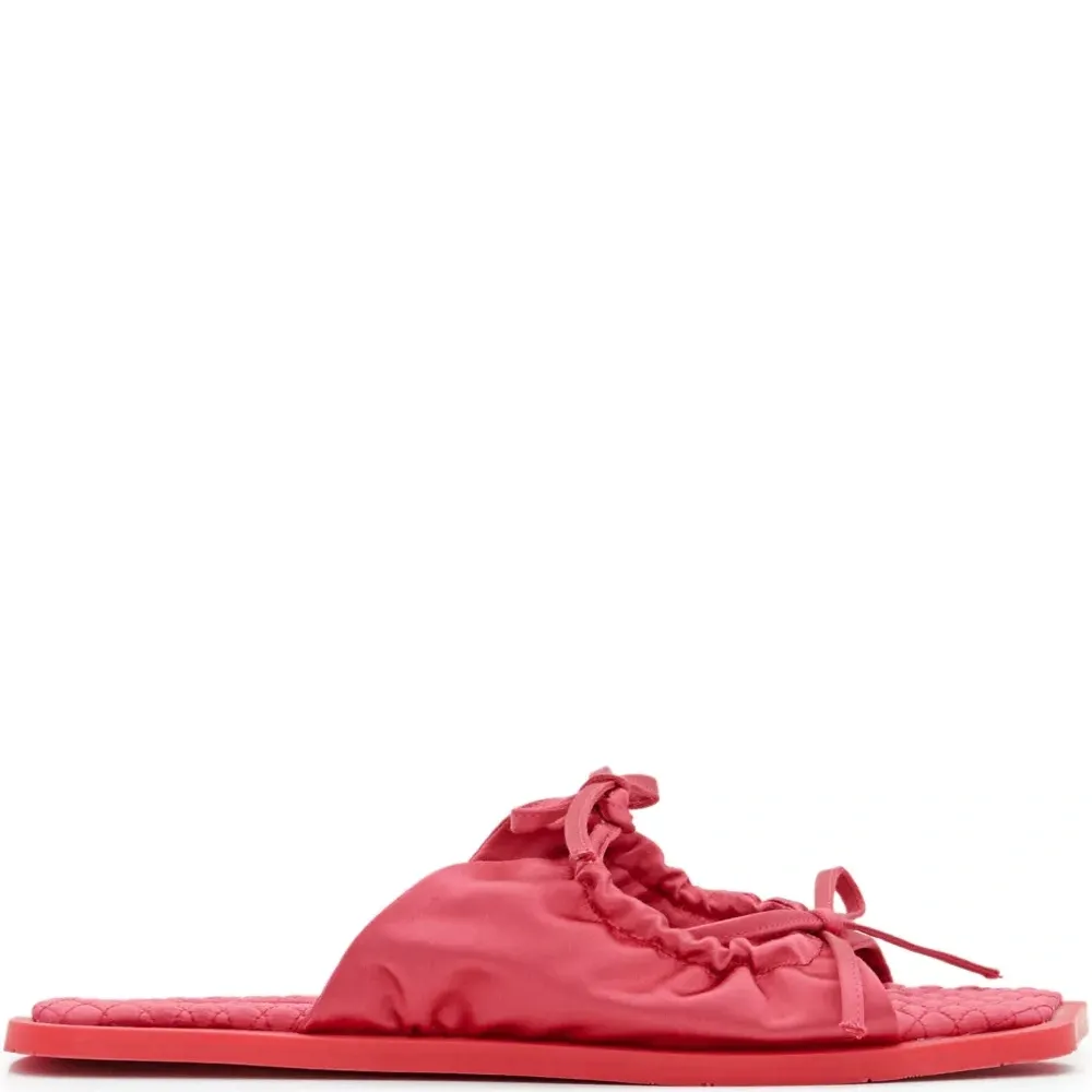 розовый стеганая стелька застежка с двойным бантом сборчатая ткань открытый носок плоская подошва