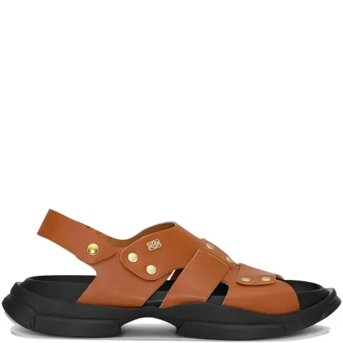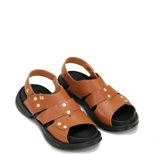 коричневый застежка на кнопках декоративные заклепки открытый носок плоская подошва
