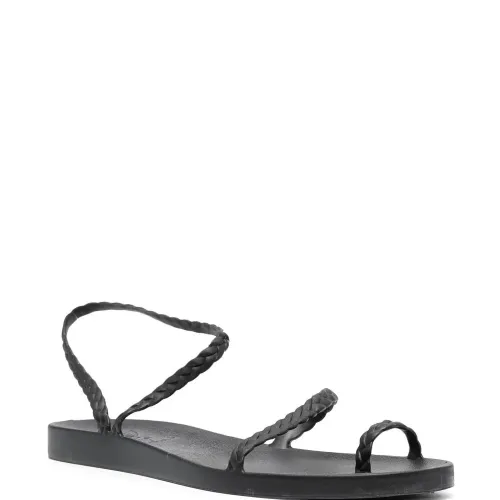 Плетеный ремень, открытый носок, ремешок на палец, ремешок на щиколотке, стелька с логотипом и плоская резиновая подошва. Цвет: черный. Positively Conscious: Мы объединились с агентством Good On You, которое составляет рейтинг ответственных марок. Этот бренд получил отметку «Ответственный выбор», так как отвечает ключевым стандартам агентства.