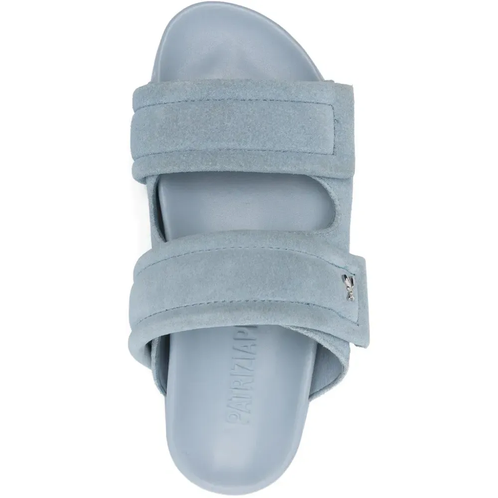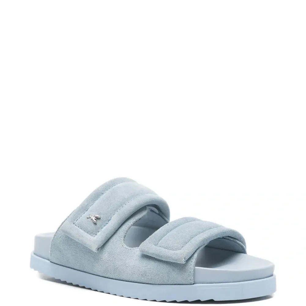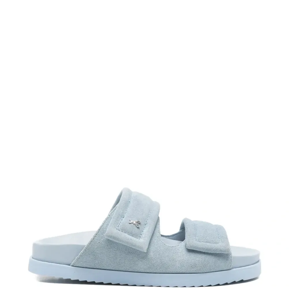 синие замшевые открытые туфли с логотипом и плоской подошвой