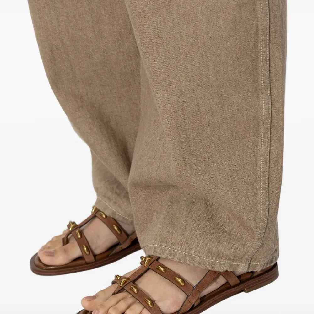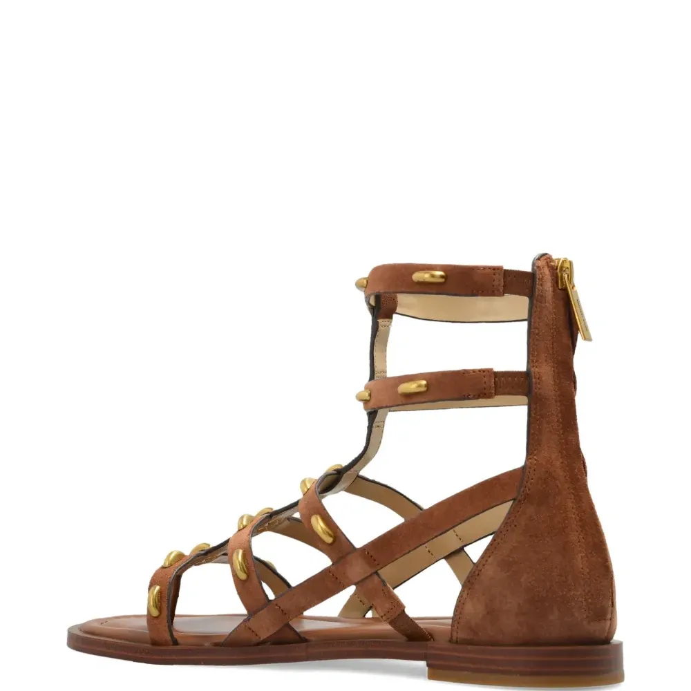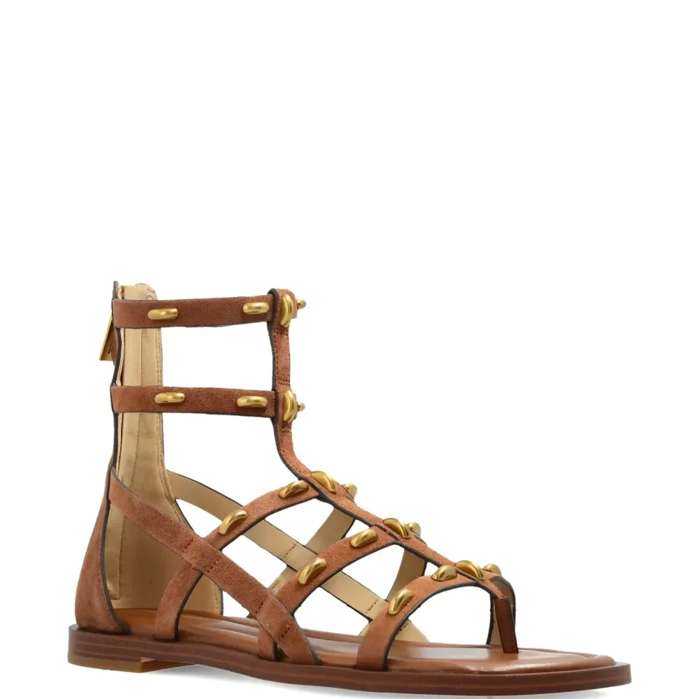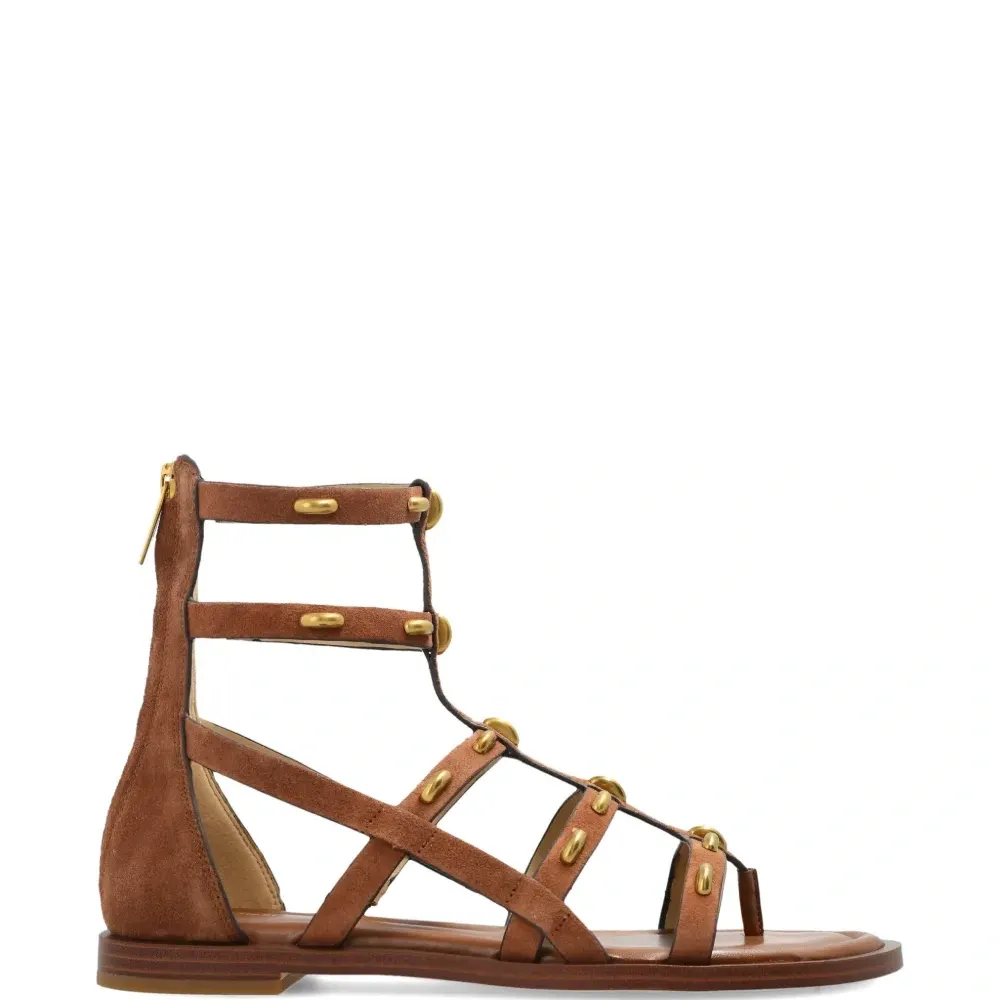 коричневые с золотистыми заклёпками, ремешковый дизайн, застёжка-молния, плоская подошва