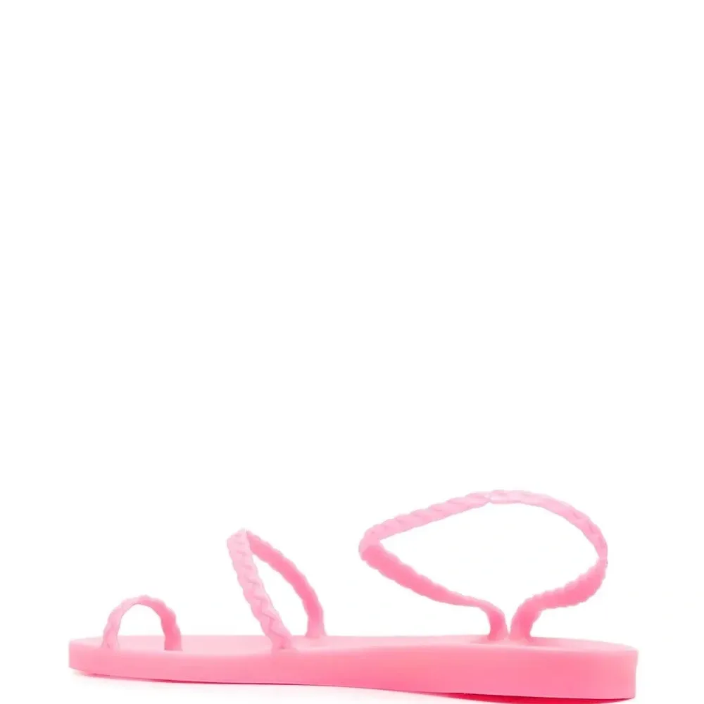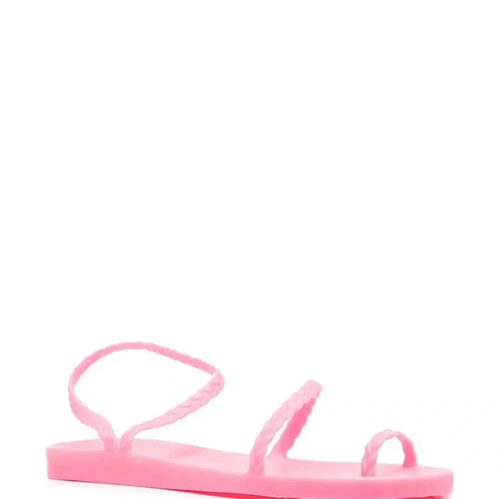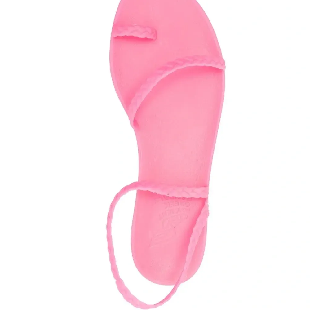 Фуксия, несколько вариантов крепления ремня, ремешок на палец, открытый носок и плоская резиновая подошва.