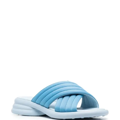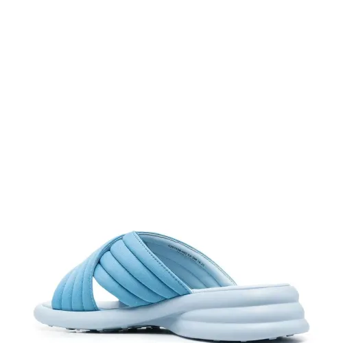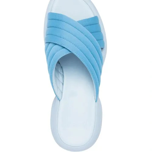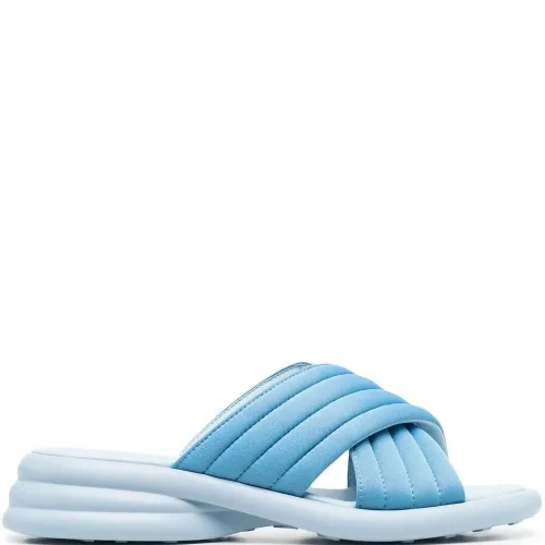 Синий, переработанный полиэстер, открытый носок, перекрестные ремешки и низкий блочный каблук. Этот товар как минимум на 50% состоит из переработанных или повторно использованных материалов. Узнать больше о том, какие товары получают отметку «Ответственный выбор», можно из материала «Как мы оцениваем экологичность и этичность».