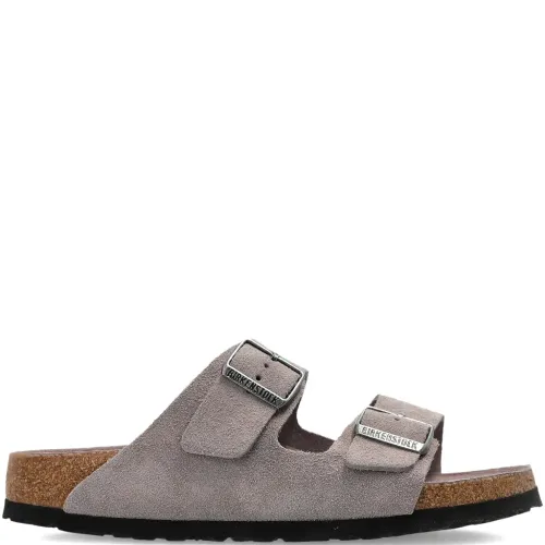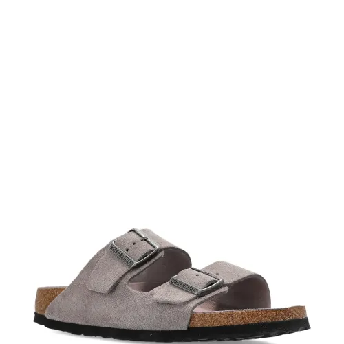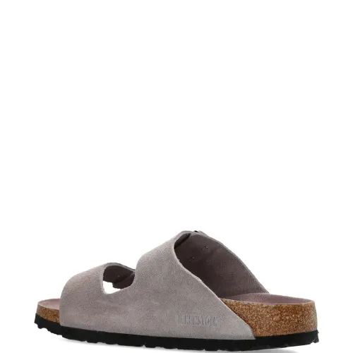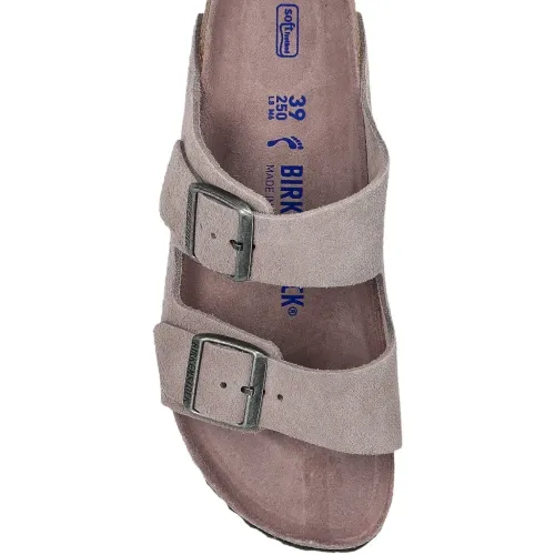 выцветшие фиолетовые замшевые ремешки, застежка на пряжку, анатомическая стелька, плоская подошва