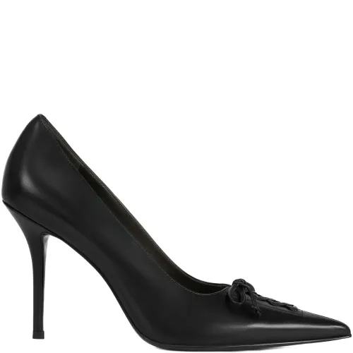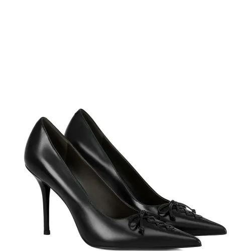 Туфли-лодочки на каблуке 100 мм с заострённым носком и шнуровкой