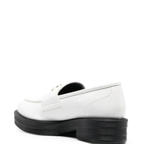 Белый, черный, искусственная кожа, гладкая текстура кожи, золотистый металлический логотип, строчка в тон, стелька с логотипом, закругленный носок, модель без застежки, контрастная резиновая подошва и плоская резиновая подошва.