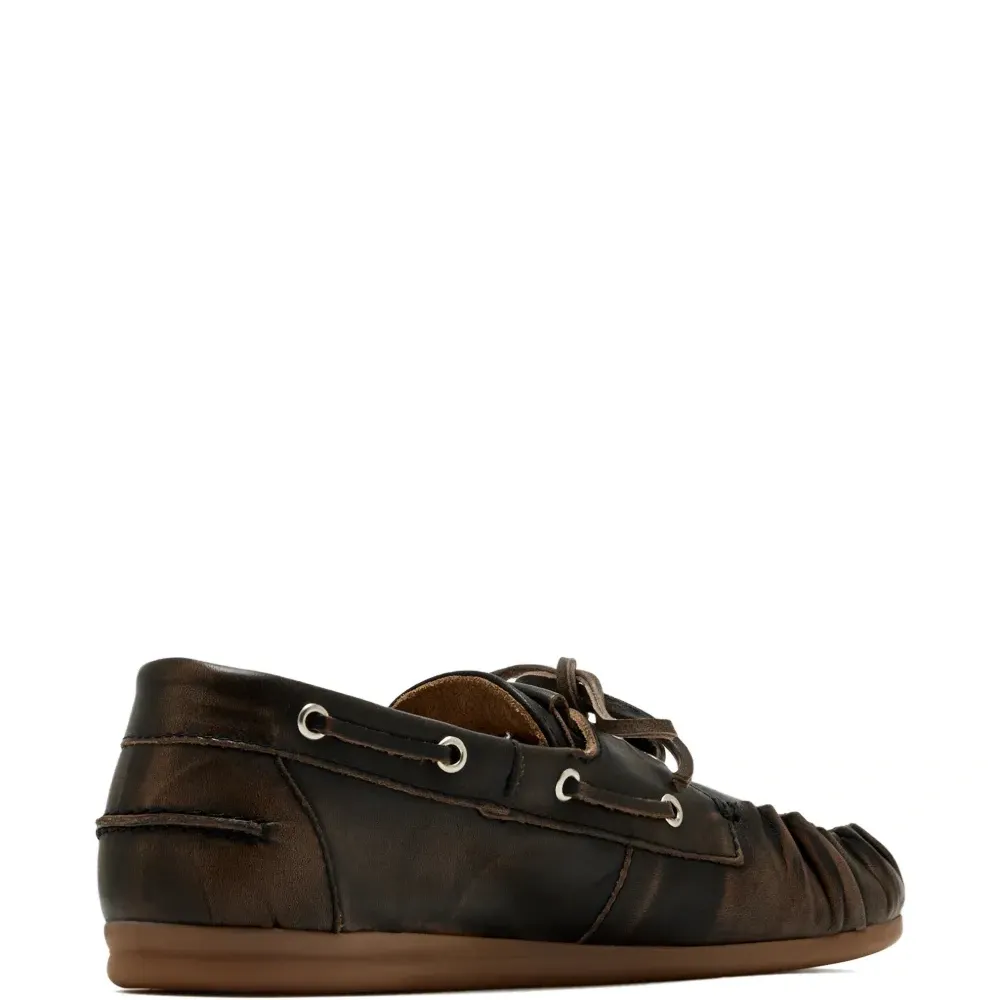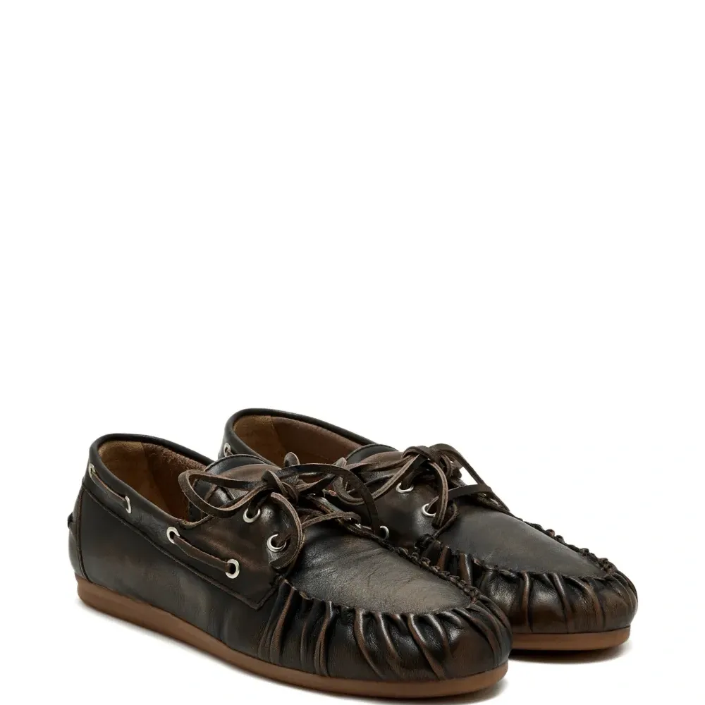 Коричневые лоферы на шнуровке с брашированной отделкой