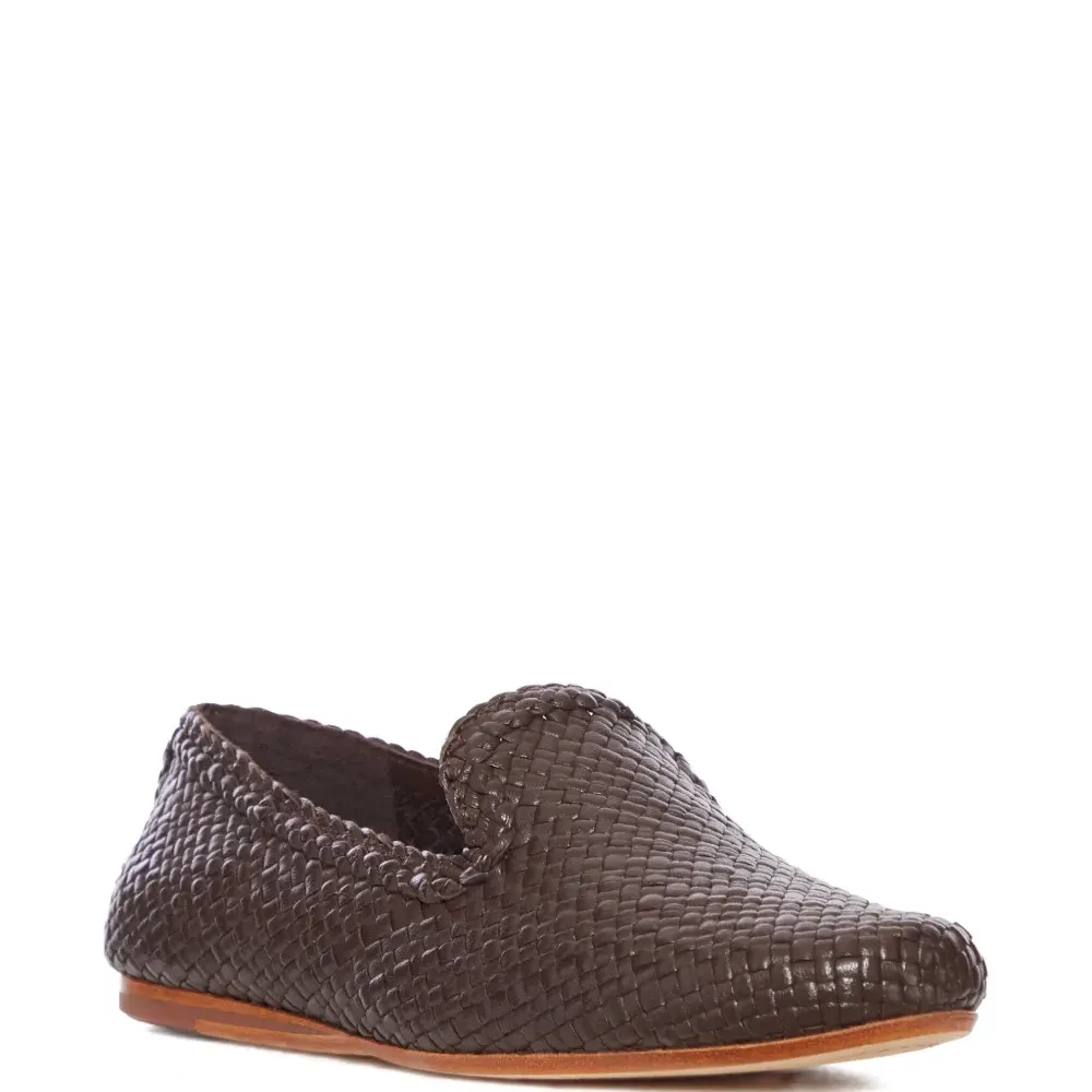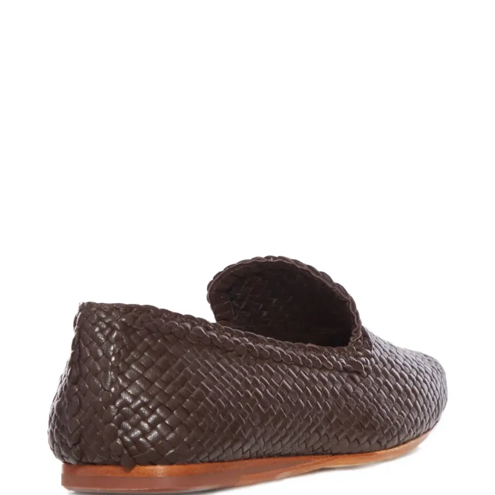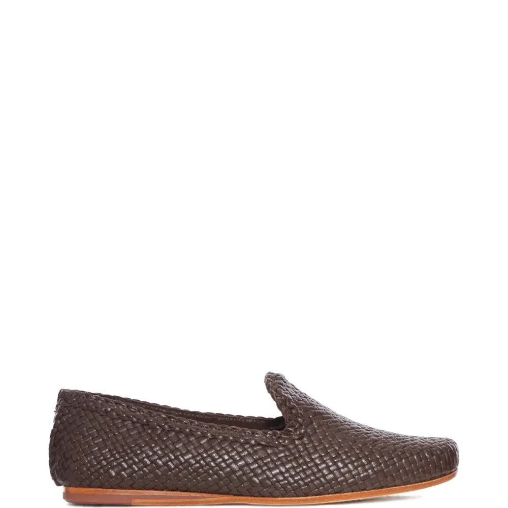 коричневые туфли без застежек с плетёным дизайном, круглым носком и плоской подошвой