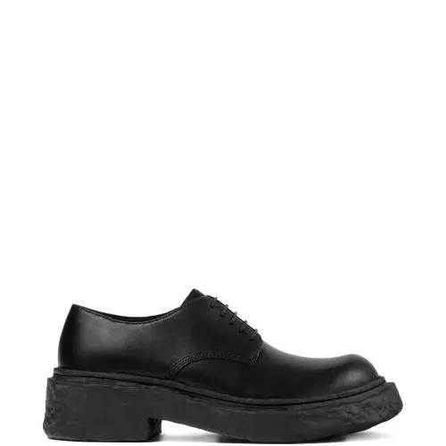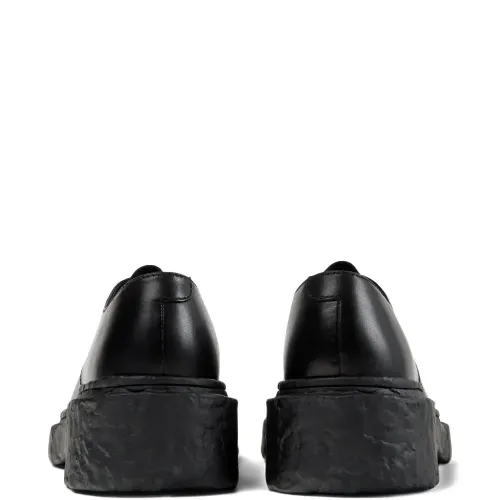 черный цвет, гладкая отделка, шнуровка, рельефная подошва, видимая прострочка, низкий каблук