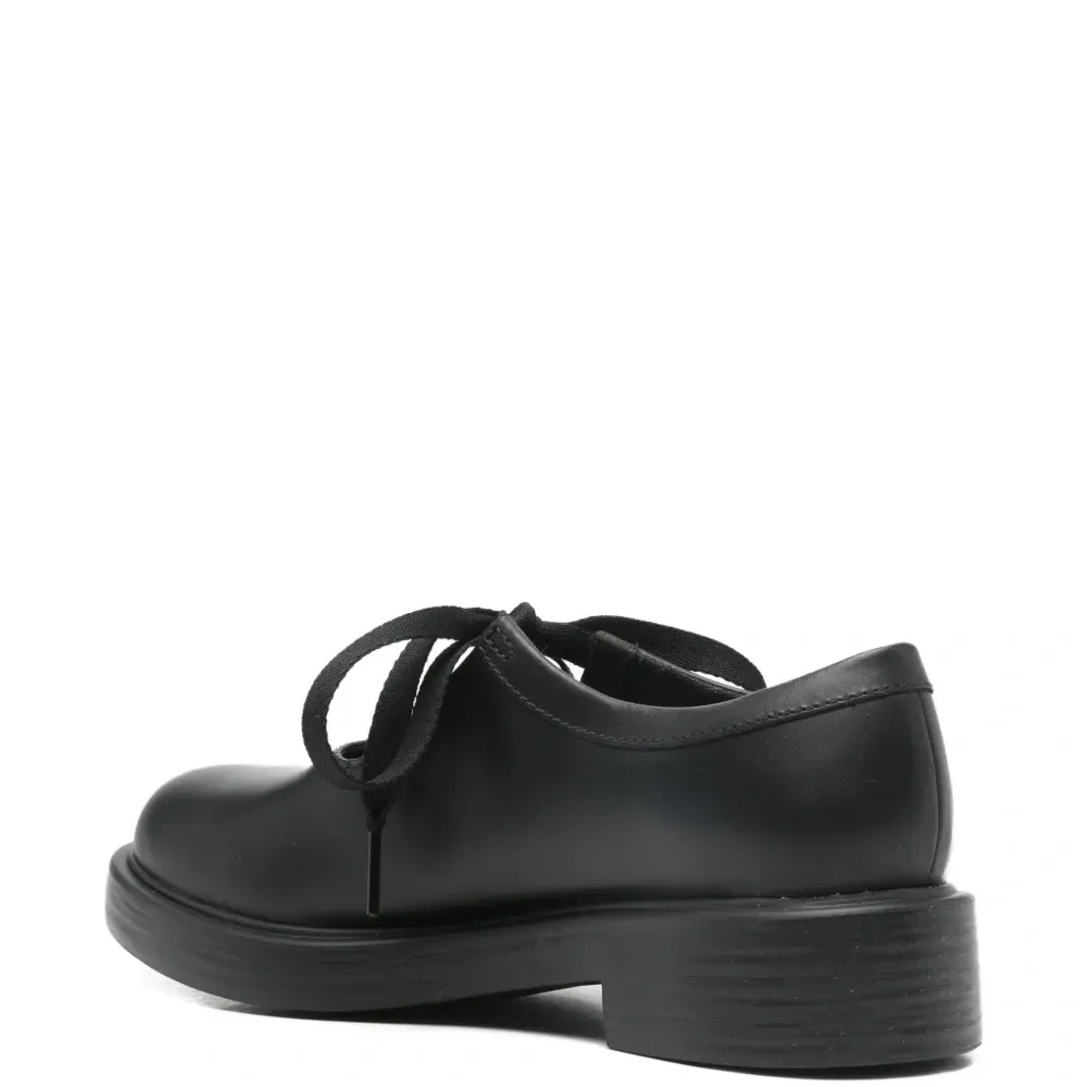 черные с шнуровкой, круглый носок, низкий каблук