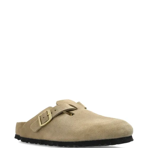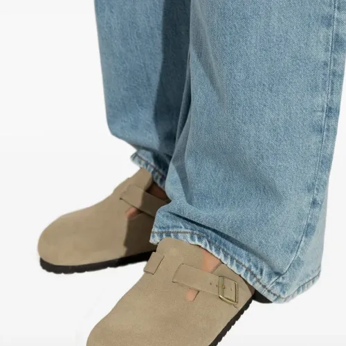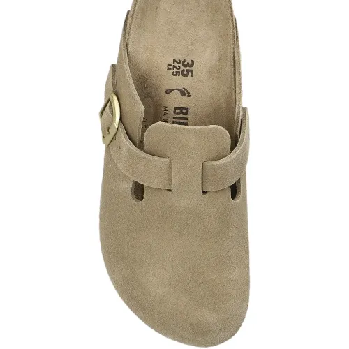 верх из замши цвета «тауп», ремешок с пряжкой, анатомическая стелька, плоская подошва