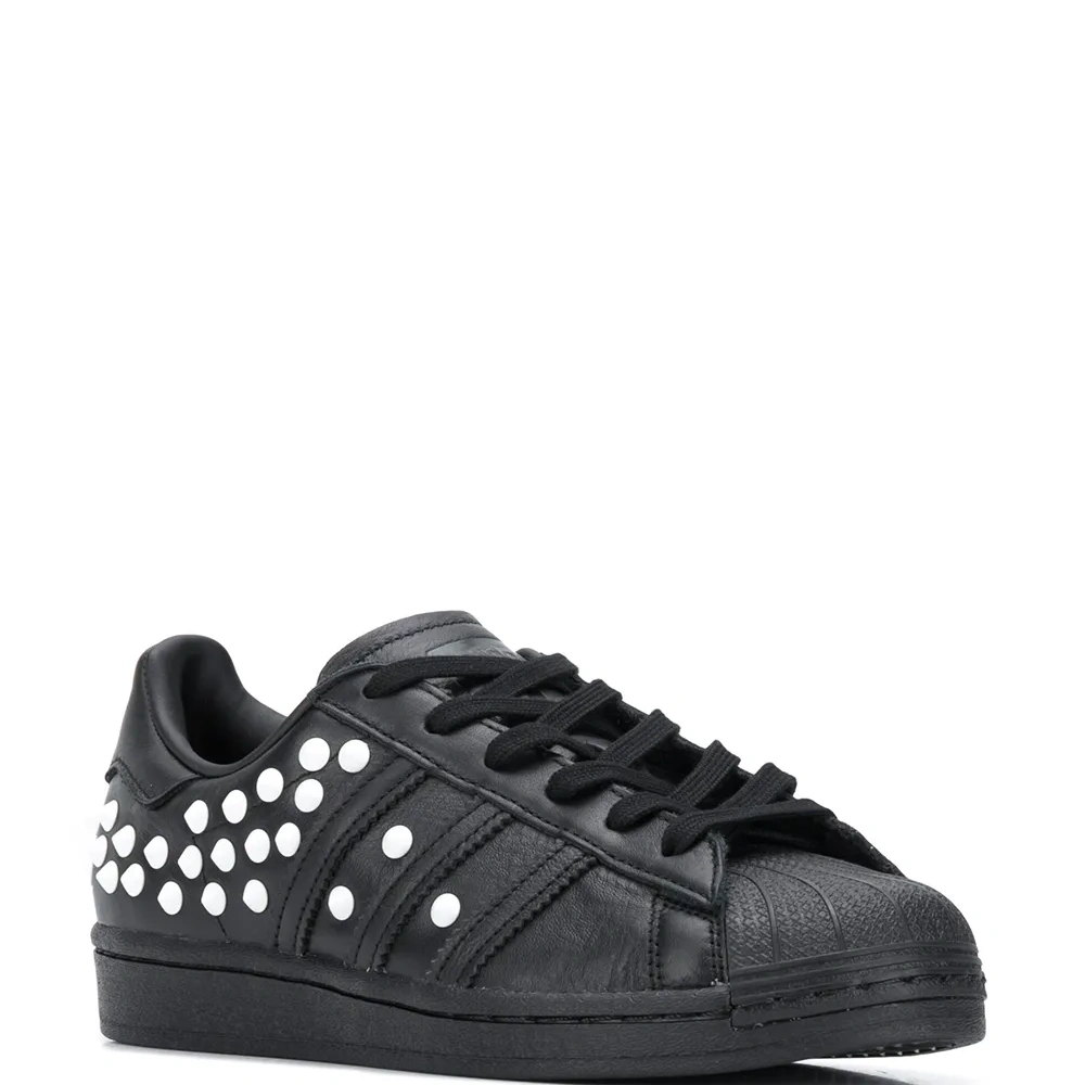Кеды Superstar от adidas (Адидас). Закругленный носок, шнуровка спереди, фирменная деталь с тремя полосками, узор в горох, дизайн в двух тонах и плоская подошва. Цвет: черный. POSITIVELY CONSCIOUS: Мы объединились с агентством Good On You, которое составляет рейтинг ответственных брендов. Этот бренд получил отметку «Ответственный выбор», потому что отвечает ключевым стандартам агентства.