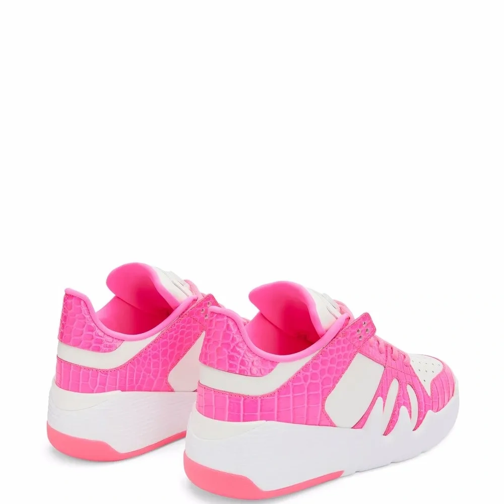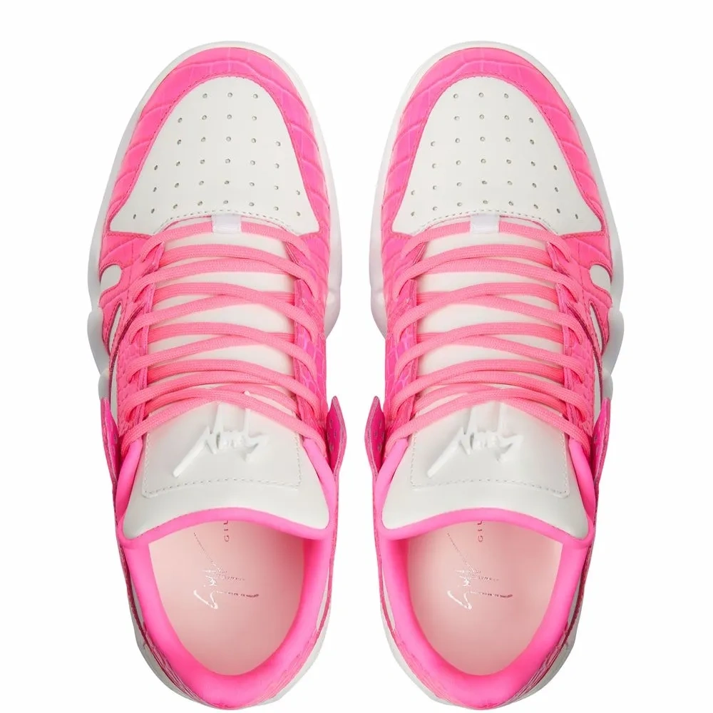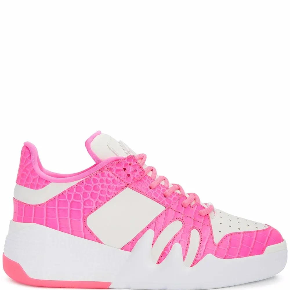 Сочетание двух оттенков, металлический логотип на язычке, перфорация, закругленный носок, шнуровка спереди, застежка на молнии сбоку, стелька с логотипом и плоская резиновая подошва.