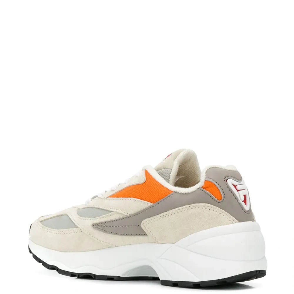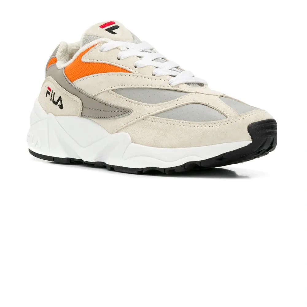 Кроссовки 'V94M' от Fila. Миндалевидный носок, шнуровка спереди и плоская резиновая подошва.
