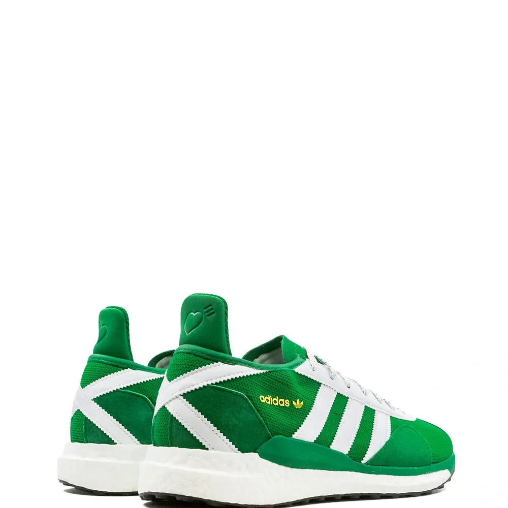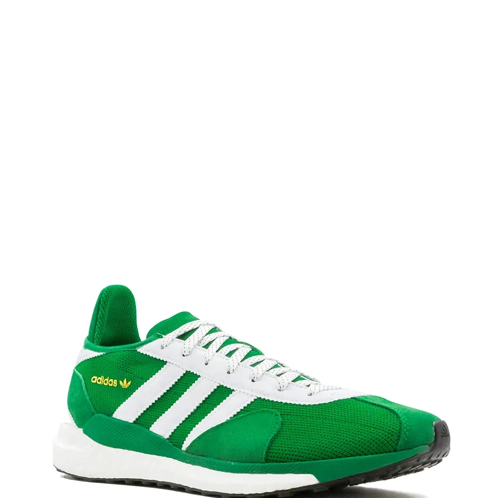 Закругленный носок, плоская резиновая подошва, шнуровка спереди, стелька с логотипом, декор с тремя полосками и логотип-трилистник. Эта модель представлена на маркетплейсе, где можно найти самые редкие модели кроссовок, о которых мечтают коллекционеры и любители streetwear по всему миру.