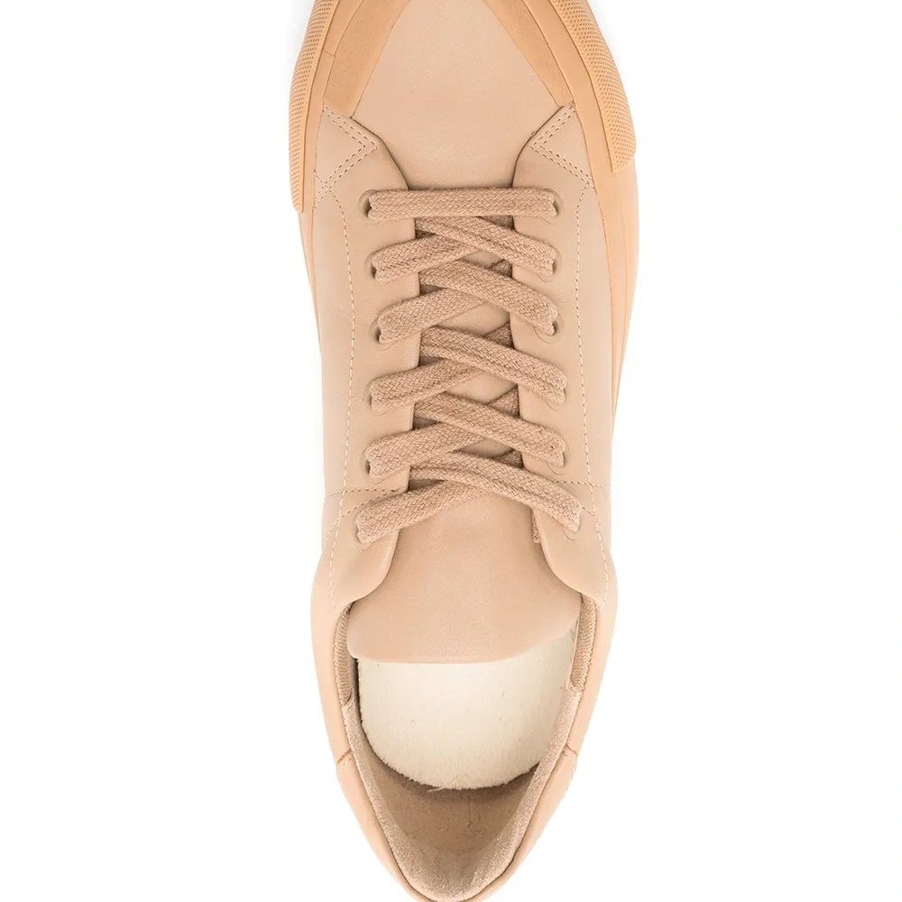 Закругленный носок, шнуровка спереди и плоская подошва.