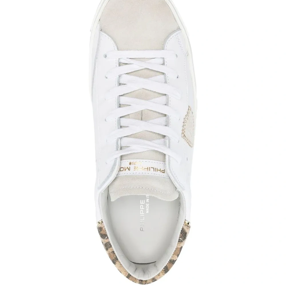 Белый, коричневый, телячья кожа, анималистичный принт, искусственно состаренное покрытие, закругленный носок, сочетание двух оттенков, нашивка с логотипом на язычке, стелька с логотипом и плоская резиновая подошва.