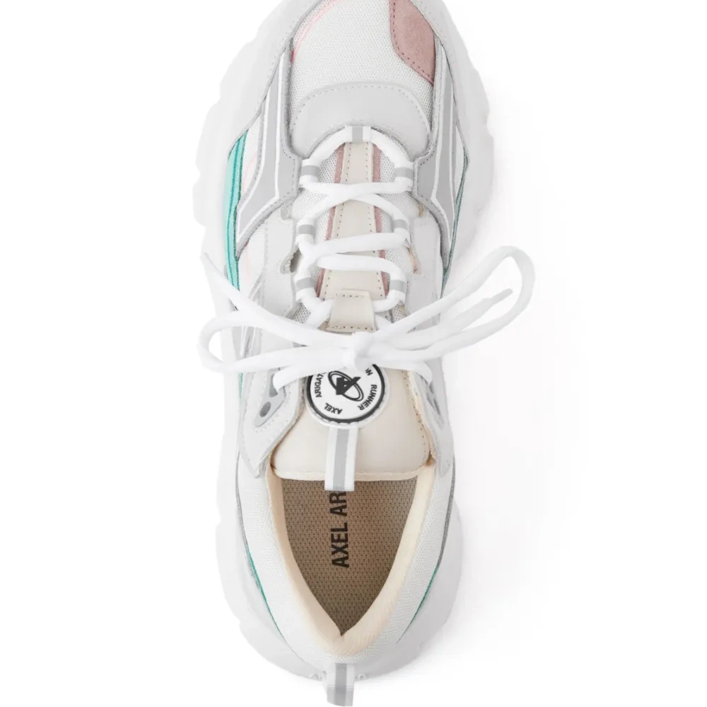 Кремовый, мятно-зеленый, светло-серый, кожа, вставки, нашивка с логотипом на язычке, закругленный носок, шнуровка спереди, стелька с логотипом, петля для подтягивания сзади и массивная резиновая подошва. Узнать больше о том, какие товары получают отметку «Ответственный выбор», можно здесь.