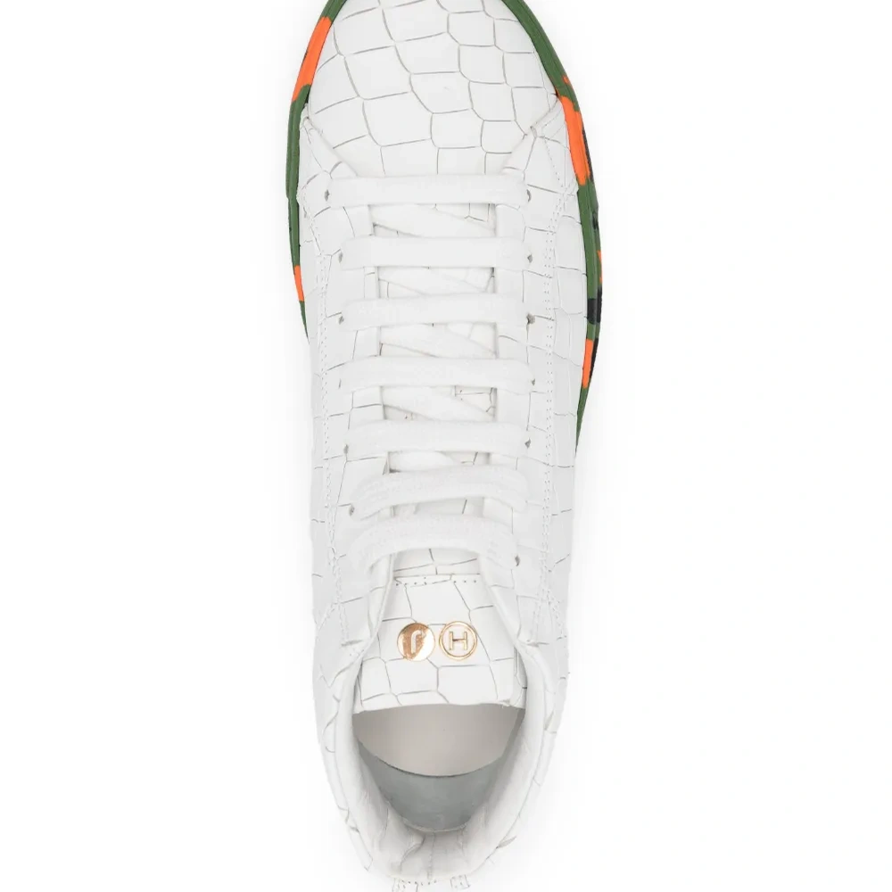Белый/разноцветный, телячья кожа, миндалевидный носок, шнуровка спереди, тиснение под кожу крокодила и плоская резиновая подошва. . Узнать больше о том, какие товары получают отметку «Ответственный выбор», можно из материала «Как мы оцениваем экологичность и этичность».