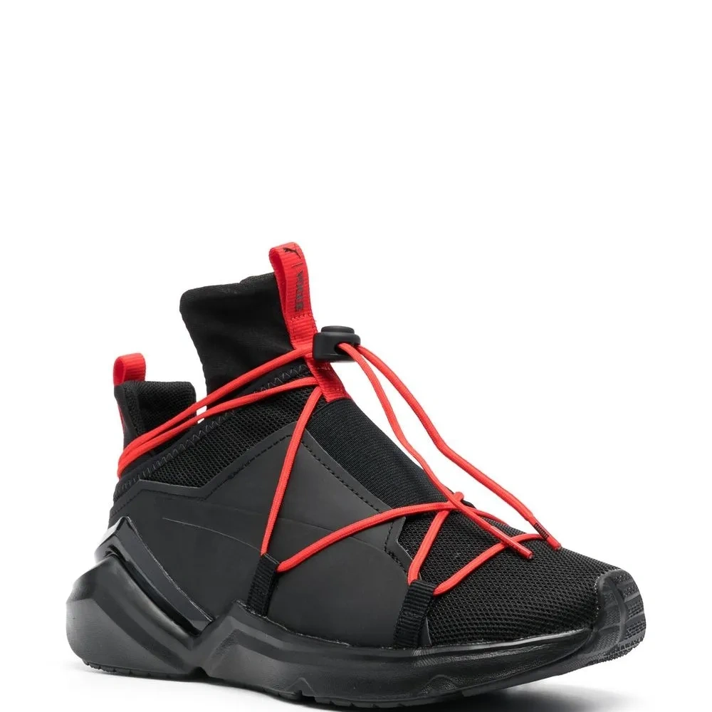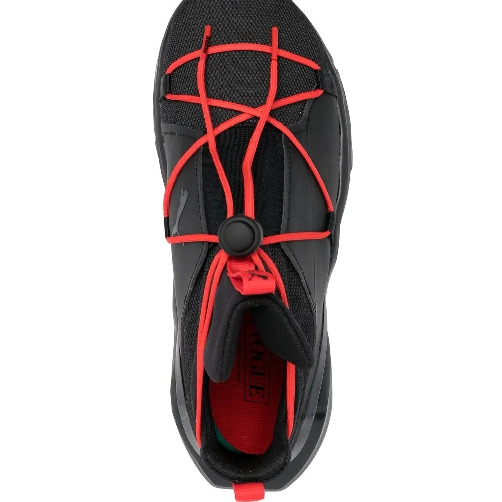 Сетка, петля для подтягивания сзади, кулиска, закругленный носок, стелька с логотипом и плоская резиновая подошва.