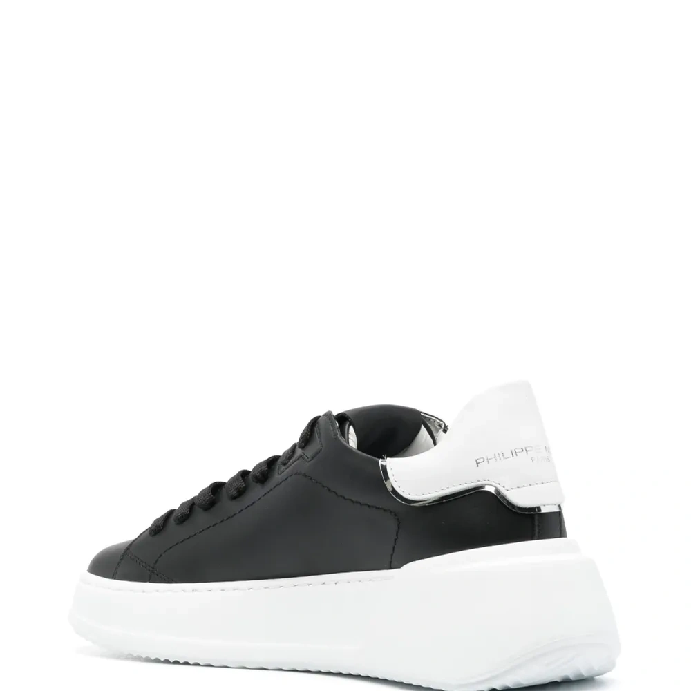 Черный/белый, серебристый, кожа, нашивка с логотипом сбоку, нашивка с логотипом на язычке, принт с логотипом сзади, контрастный задник, закругленный носок, шнуровка спереди, высота по щиколотку, подошва на платформе и плоская резиновая подошва.