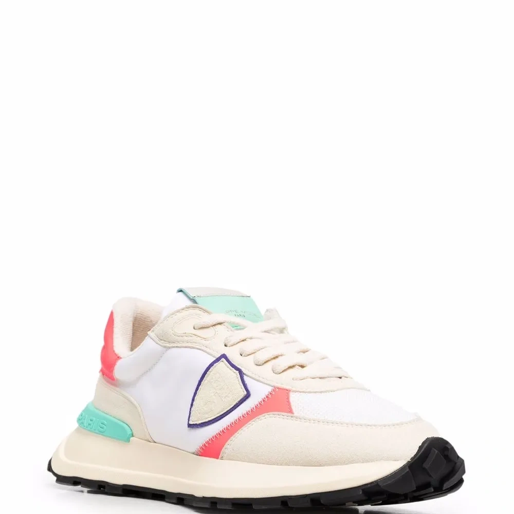 Нашивка с логотипом сбоку, шнуровка спереди, закругленный носок и плоская подошва. Цвет: разноцветный.