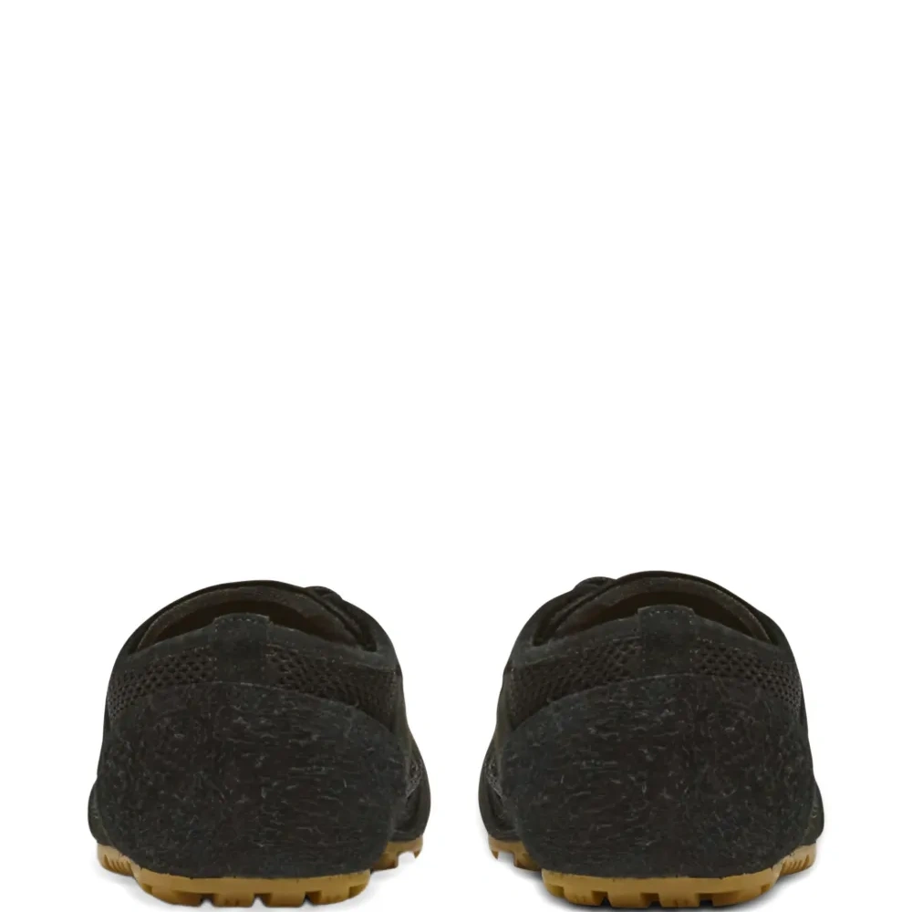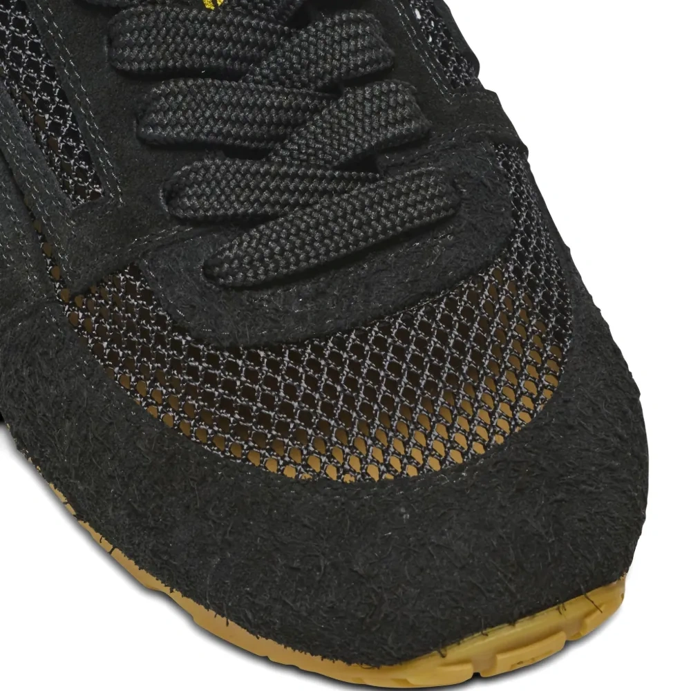 верх из черной замши, вставки из сетчатого материала, шнуровка спереди, круглый носок, логотип, рельефная резиновая подошва