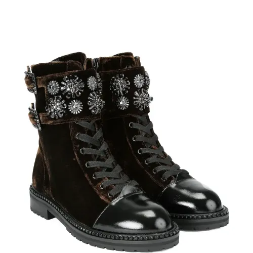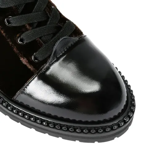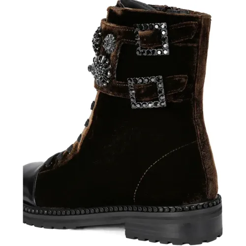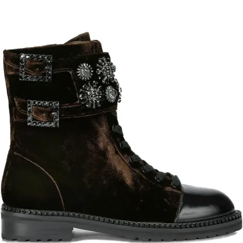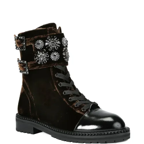 Ботинки на тракторной подошве с кристаллами, цветочными пряжками и каблуком 30 мм