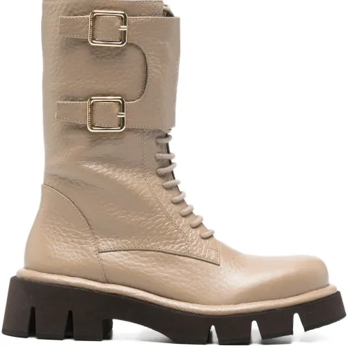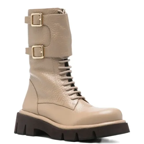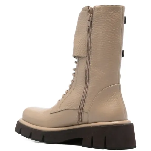 темно-бежевый цвет, пряжка, шнуровка, рифлёная подошва, резиновая подошва