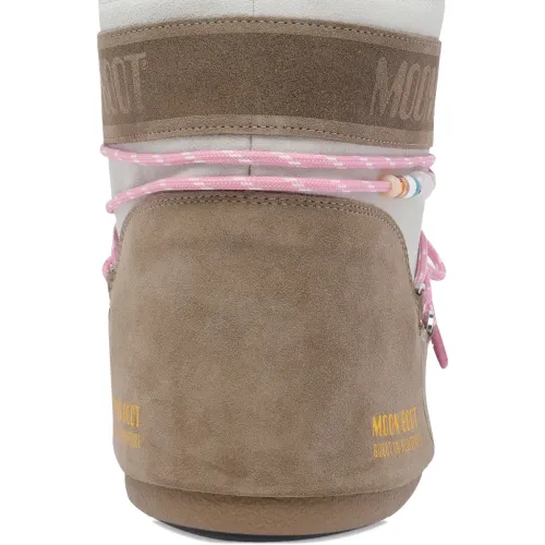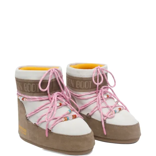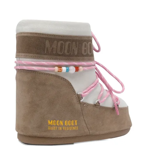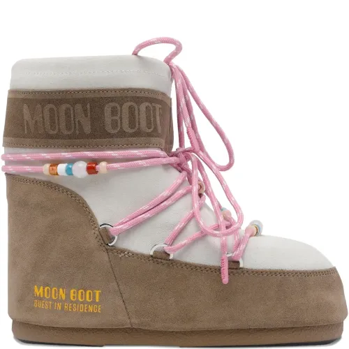 бежевый замшевый материал, круглый носок, боковой логотип, украшение бусинами, шнуровка