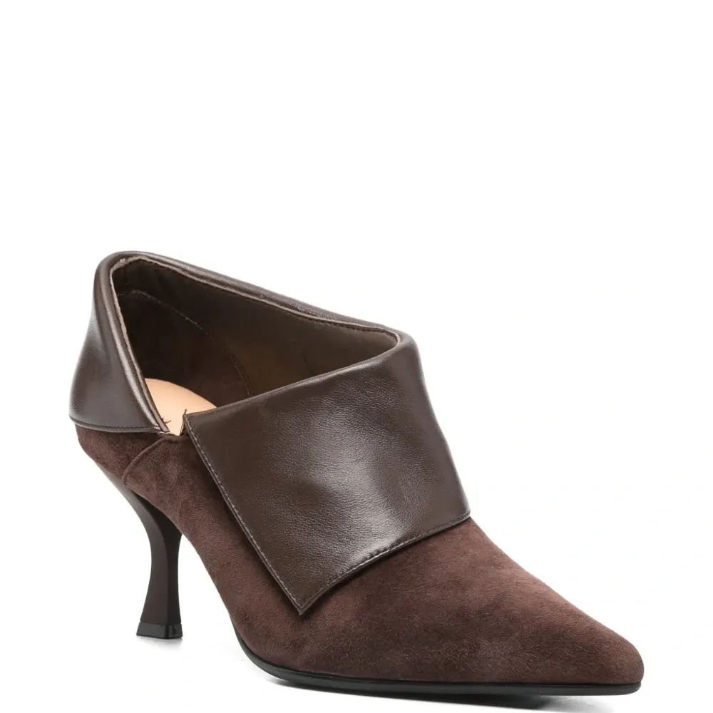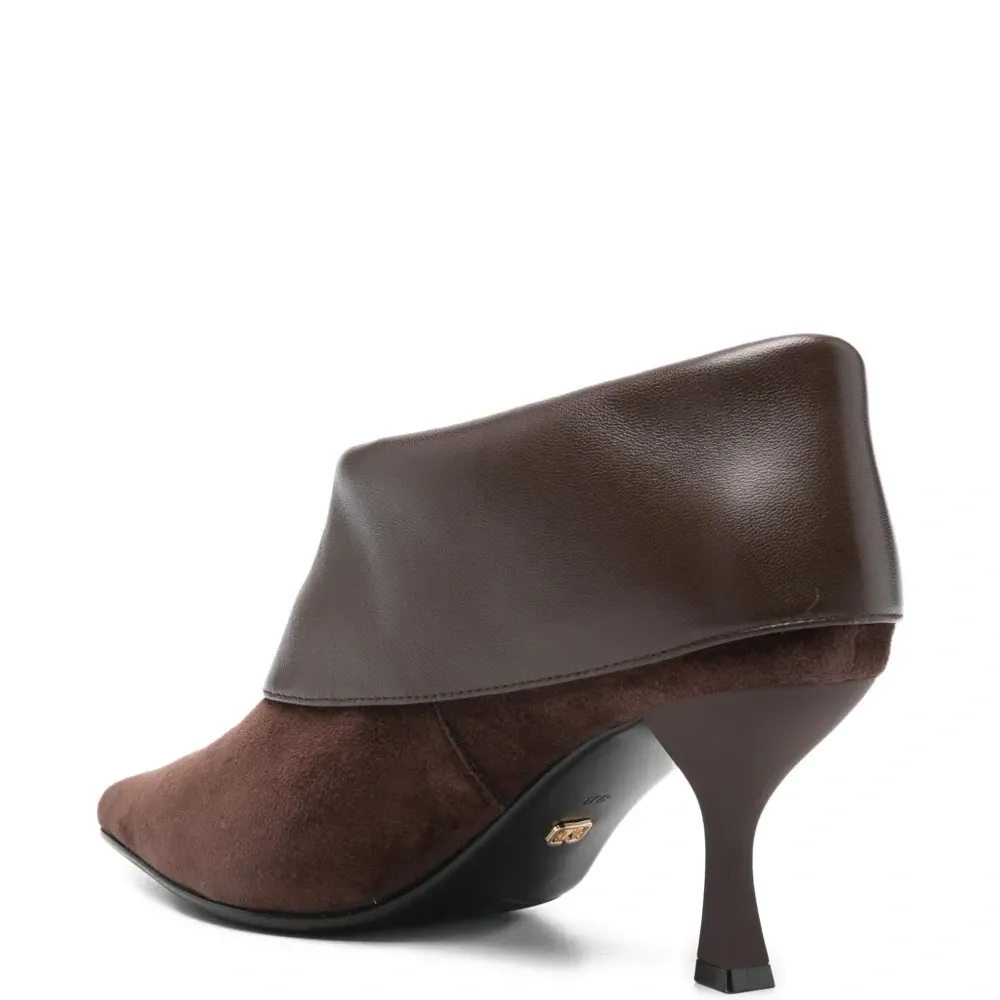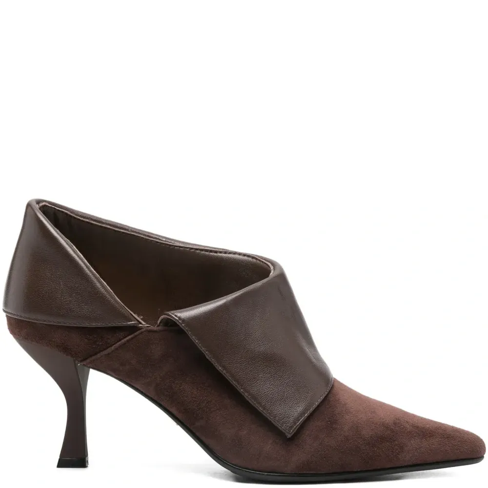 коричневые туфли с острым носком, на шпильке, с перекрещивающимися ремешками, без застёжки, с фигурным каблуком