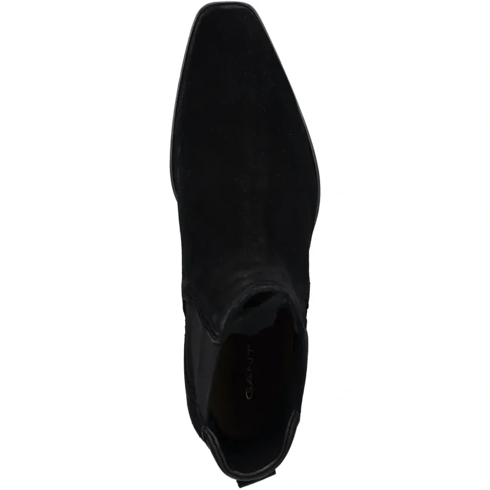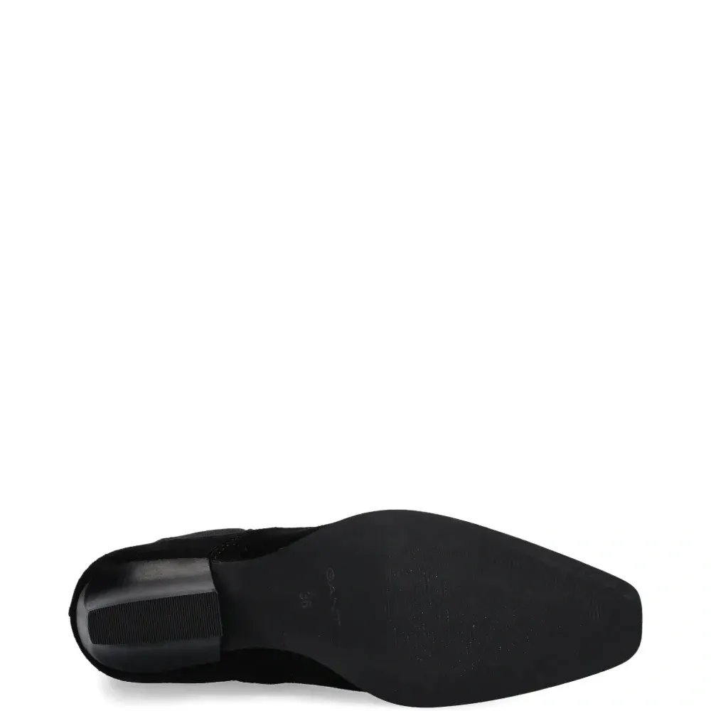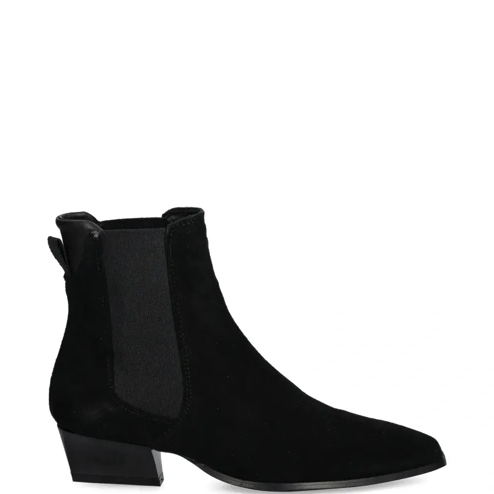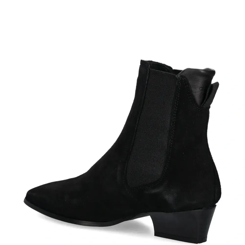 чёрные ботинки с эластичными боковыми вставками, блочным каблуком, петлёй сзади и квадратным мысом