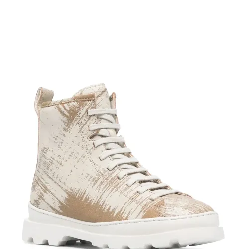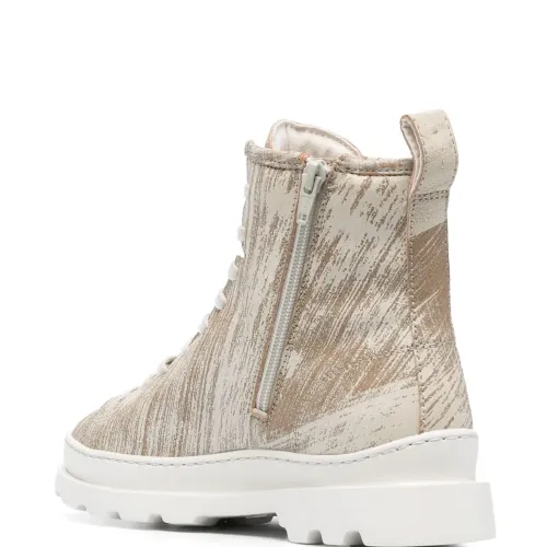 Миндальный, переработанная кожа, однотонная расцветка, принт с изображением руки, шнуровка спереди, петля для подтягивания сзади, высота по щиколотку и рифленая резиновая подошва. Этот товар как минимум на 50% состоит из переработанных или повторно использованных материалов. Узнать больше о том, какие товары получают отметку «Ответственный выбор», можно из материала «Как мы оцениваем экологичность и этичность».