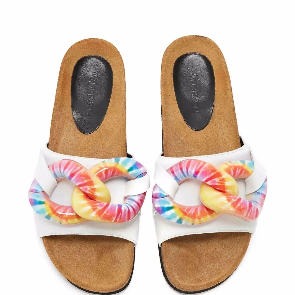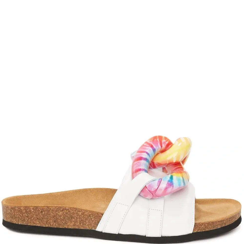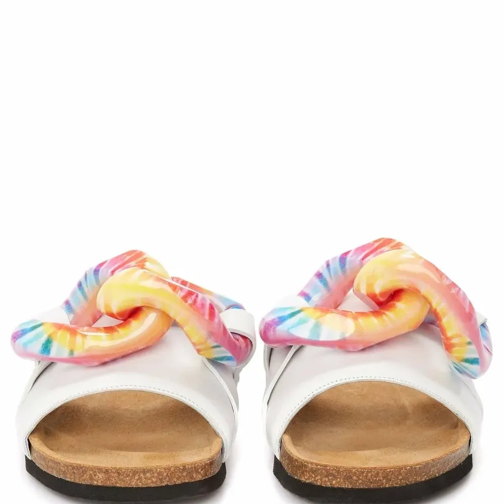 белый кожаная подкладка цепочка открытый носок модель без застежки ремешок на палец стелька с логотипом плоская подошва