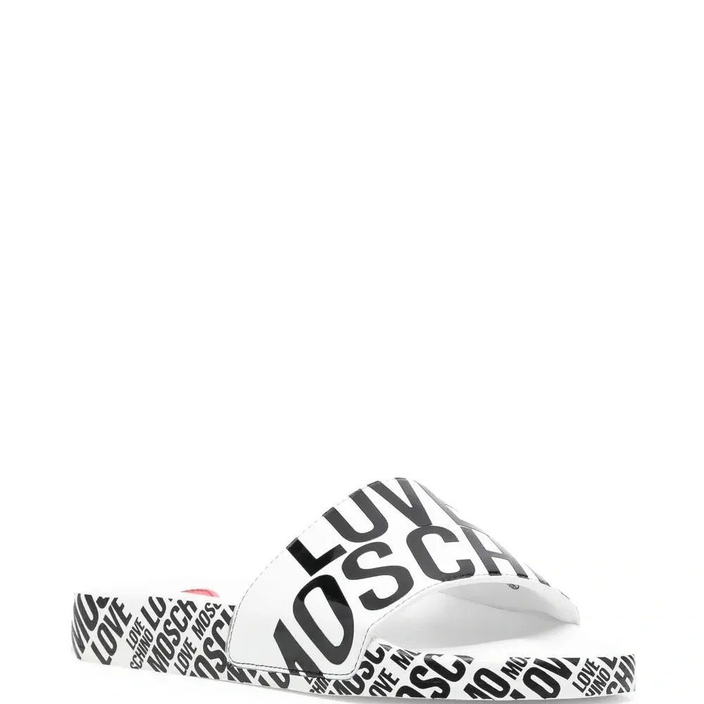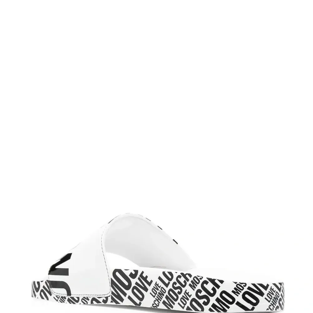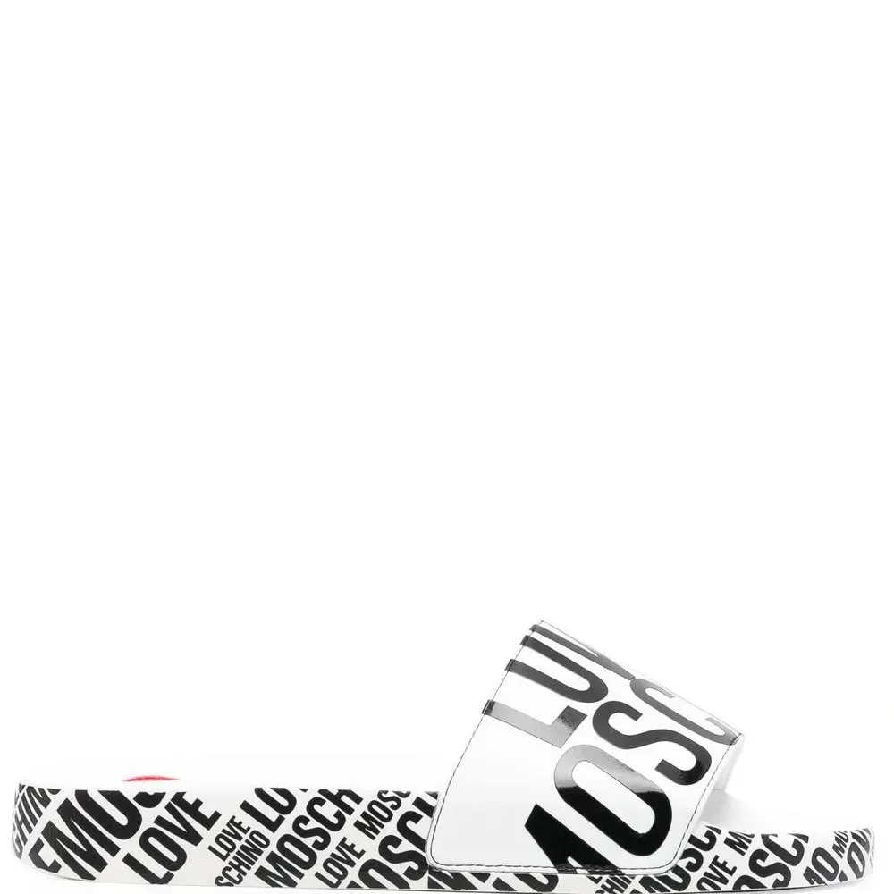 Белый, черный, сплошной принт с логотипом, формованная стелька и открытый носок.