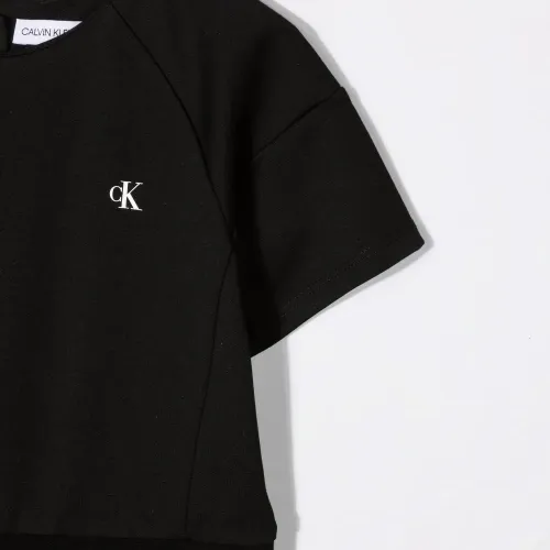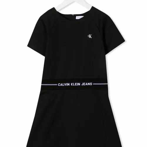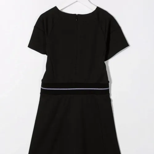 Застежка на молнии сзади, пояс с логотипом, вышитый логотип на груди, круглый вырез и короткие рукава. Цвет: черный.