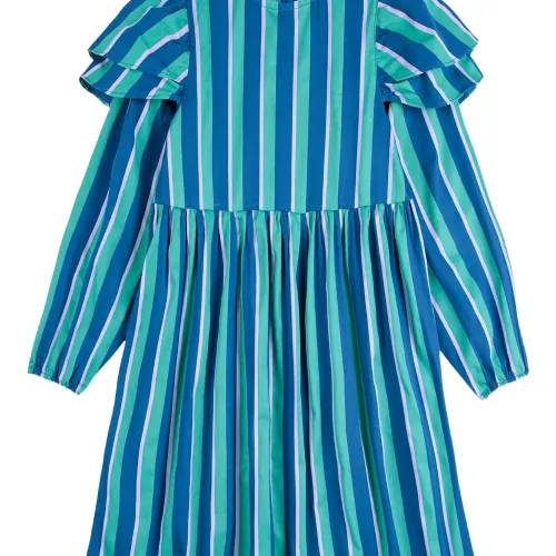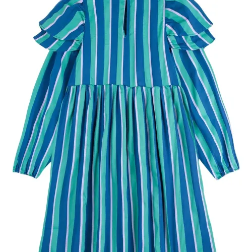 Платье в полоску с оборчатыми рукавами
