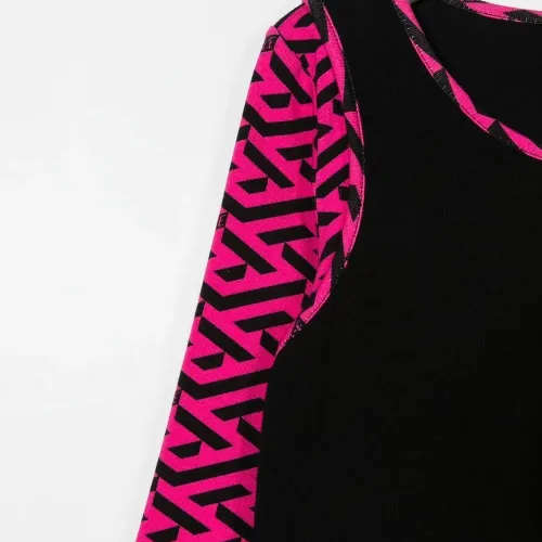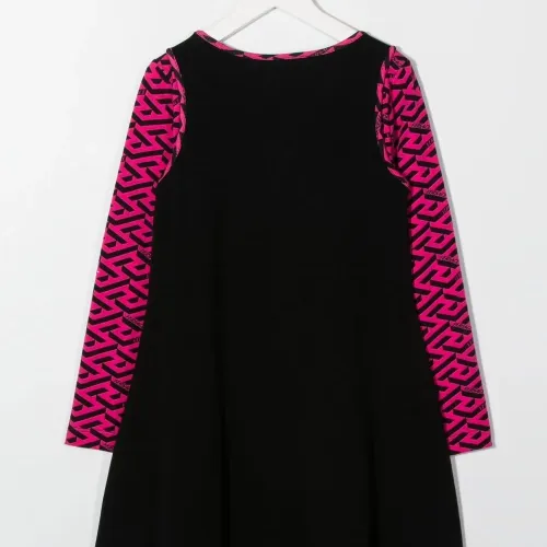 Эластичный хлопок, ткань джерси, знаковый принт La Greca, круглый вырез, длинные рукава и прямой подол.