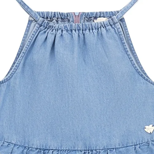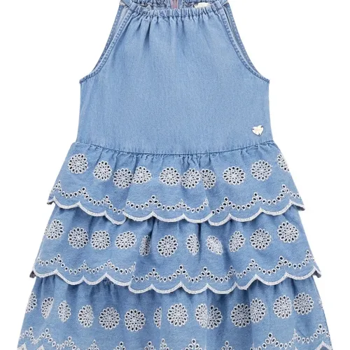 Ярусное джинсовое платье с фестонами