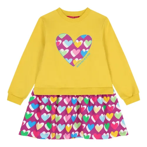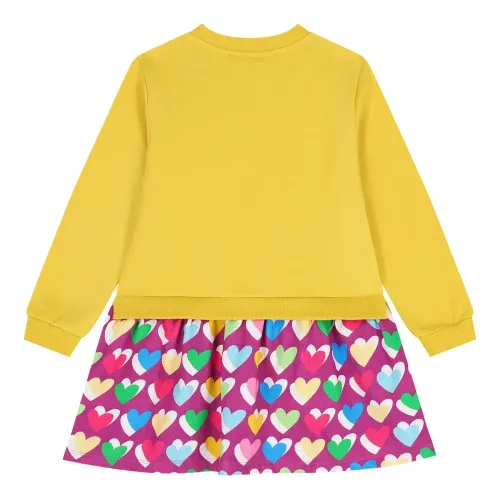 жёлтый свитшот с принтом в виде сердца, круглым вырезом, длинными рукавами и ребристыми манжетами