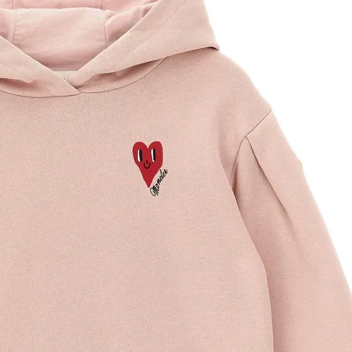 розовая хлопковая толстовка с капюшоном, манжетами на рукавах и принтом в виде сердечек