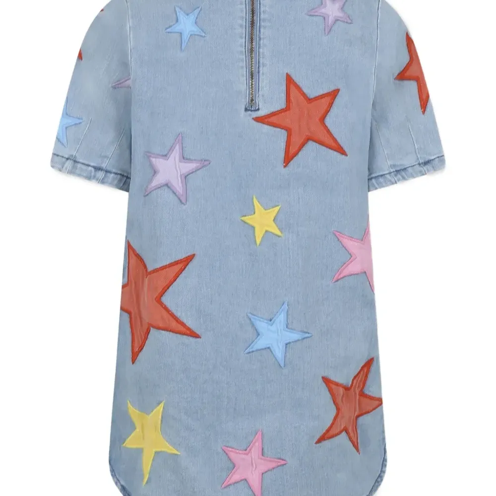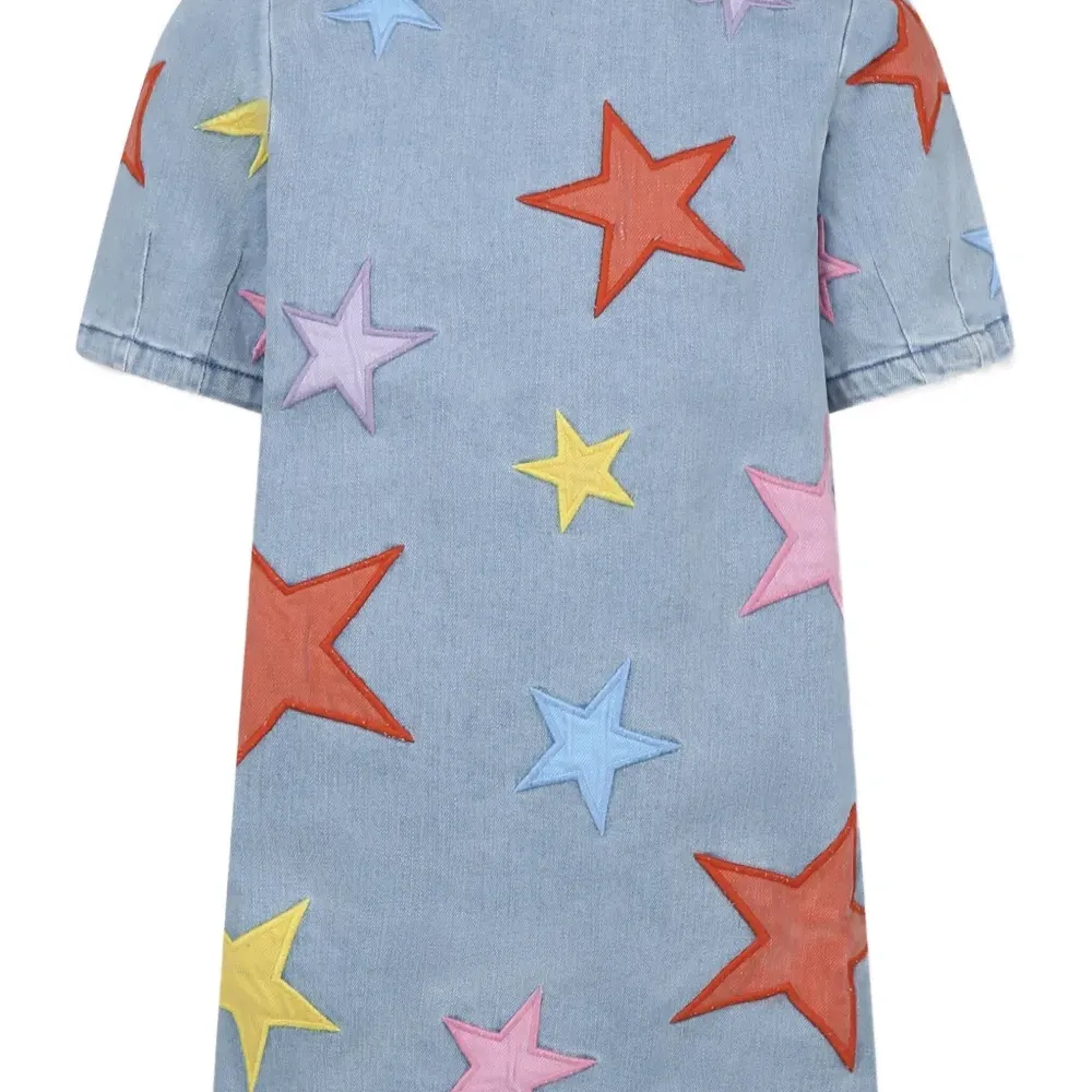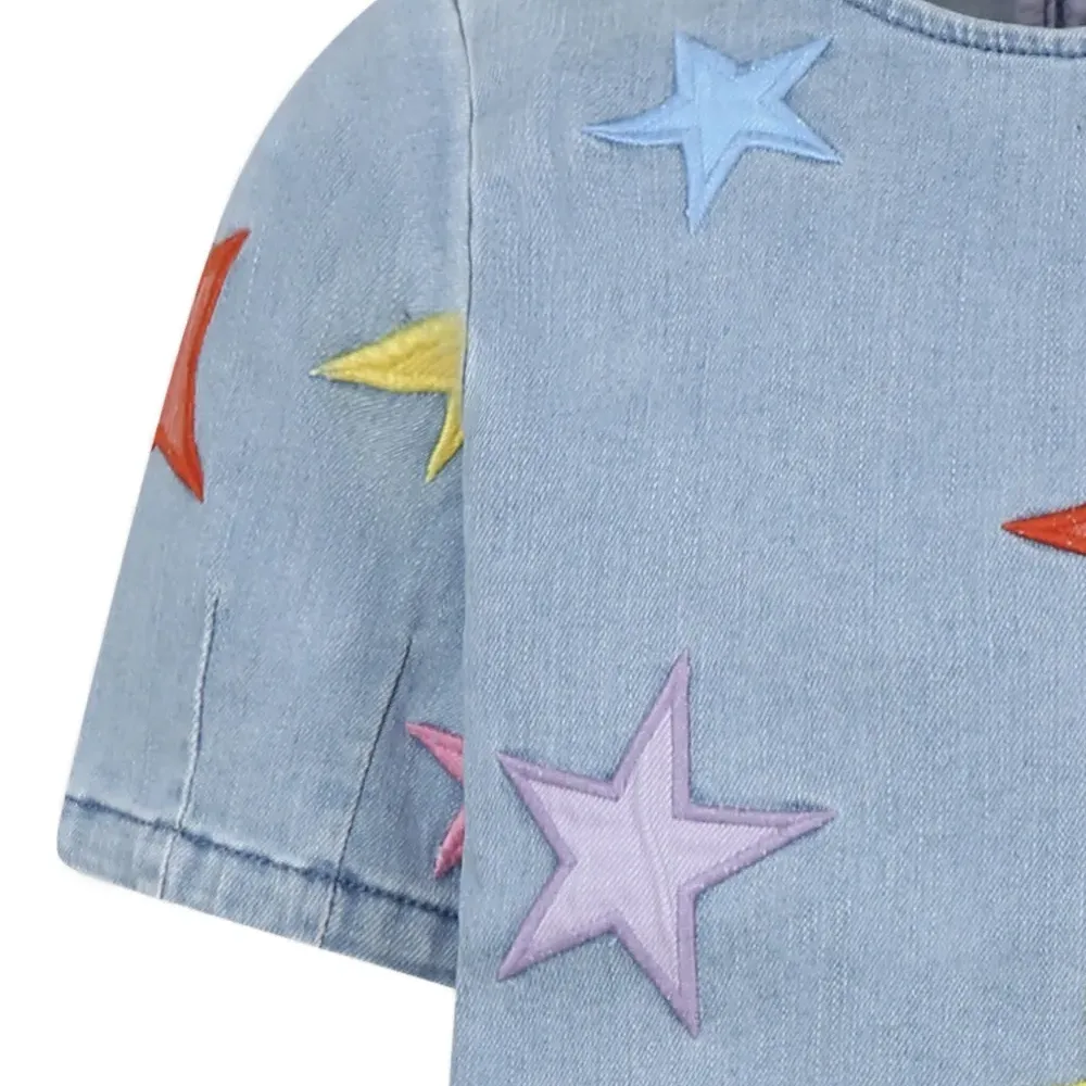 Джинсовое платье с нашивками