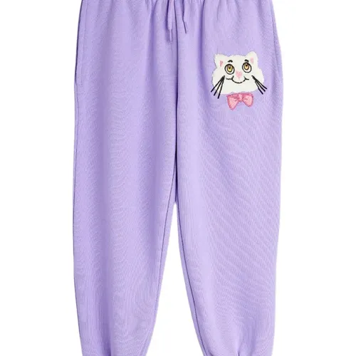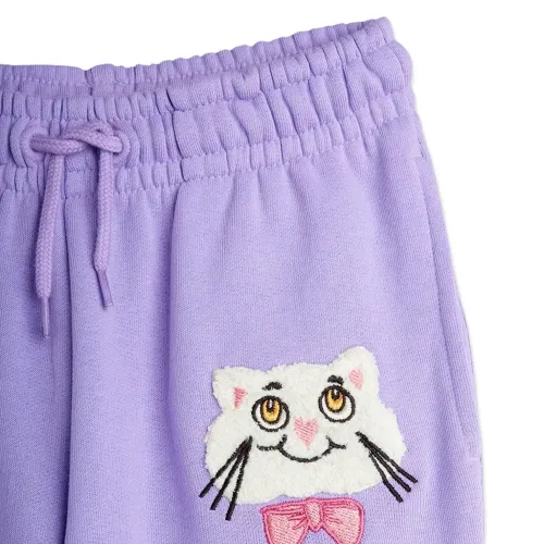 фиолетовая аппликация с кошкой, застежка на кулиску, эластичный пояс, эластичные манжеты, боковые карманы