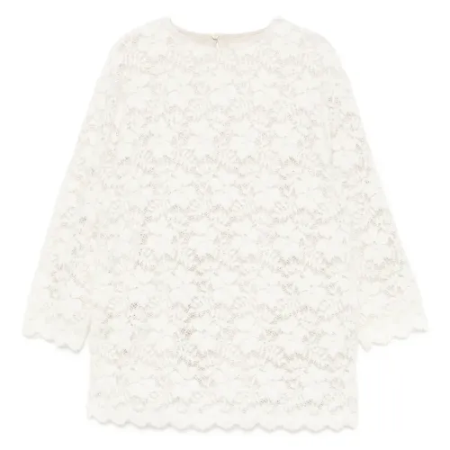 цвет "оф-вайт" (молочно-белый) деталь с разрезом-капелькой сзади круглый вырез длинные рукава