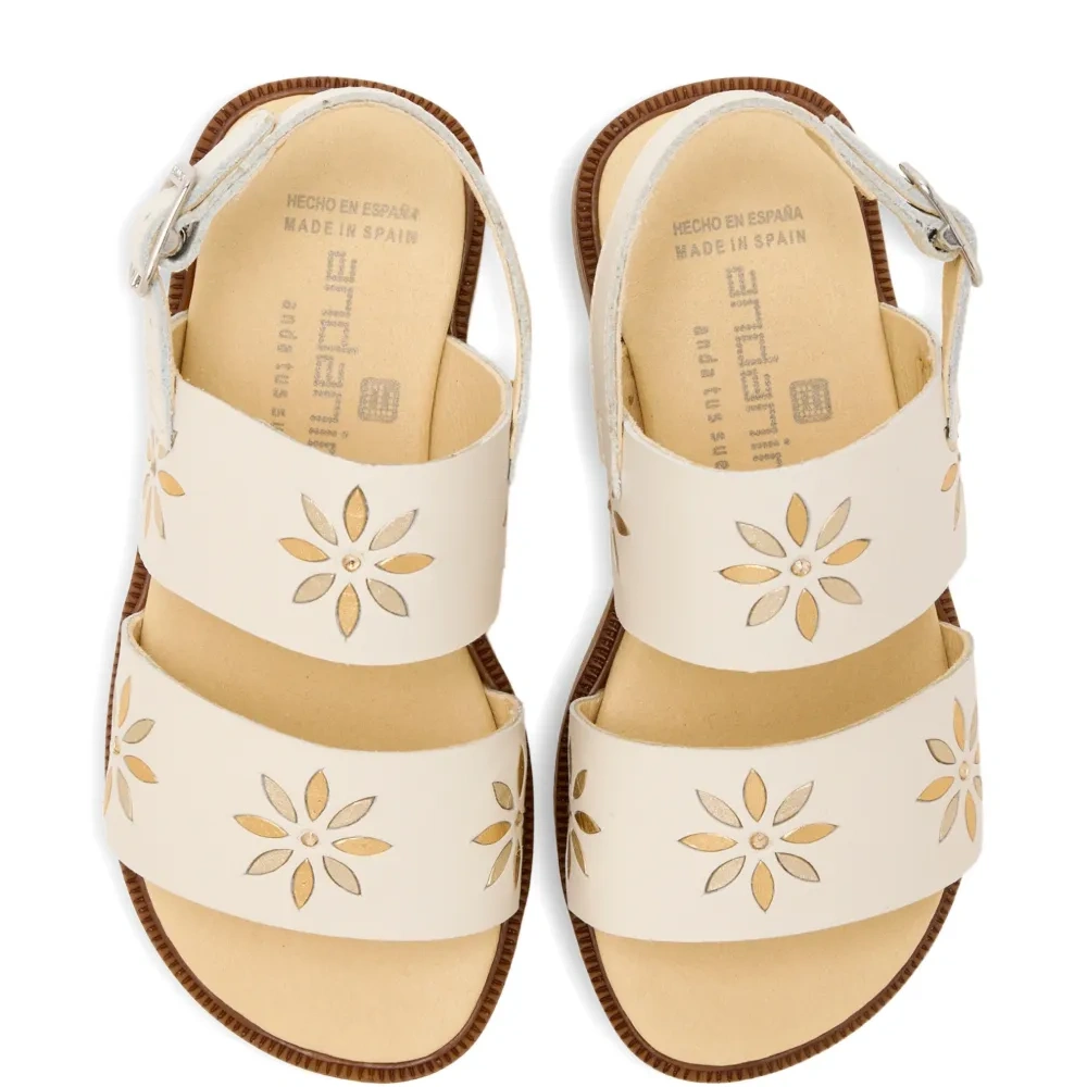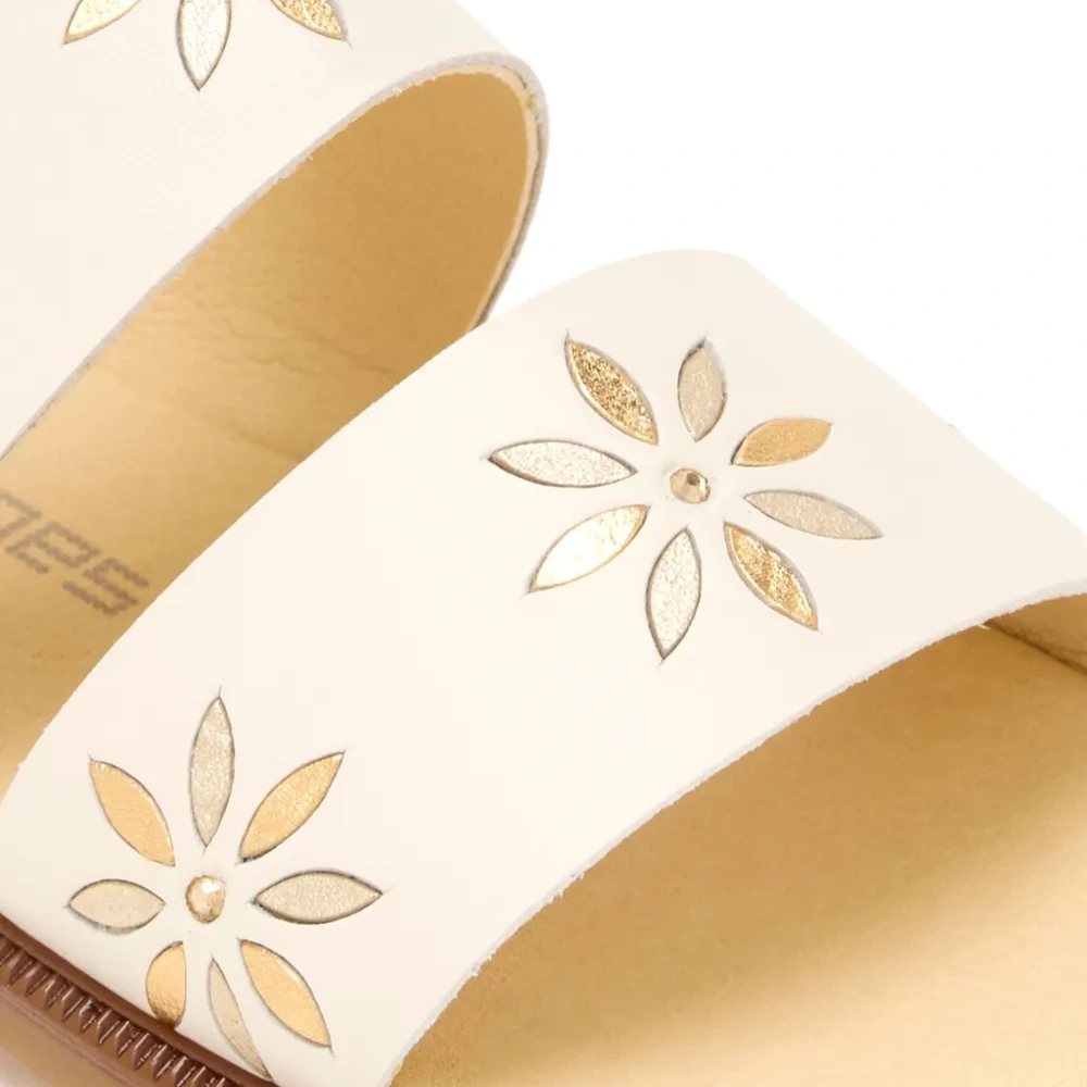 кремовые сланцы с цветочным узором, открытым носком, ремешком с пряжкой и плоской подошвой