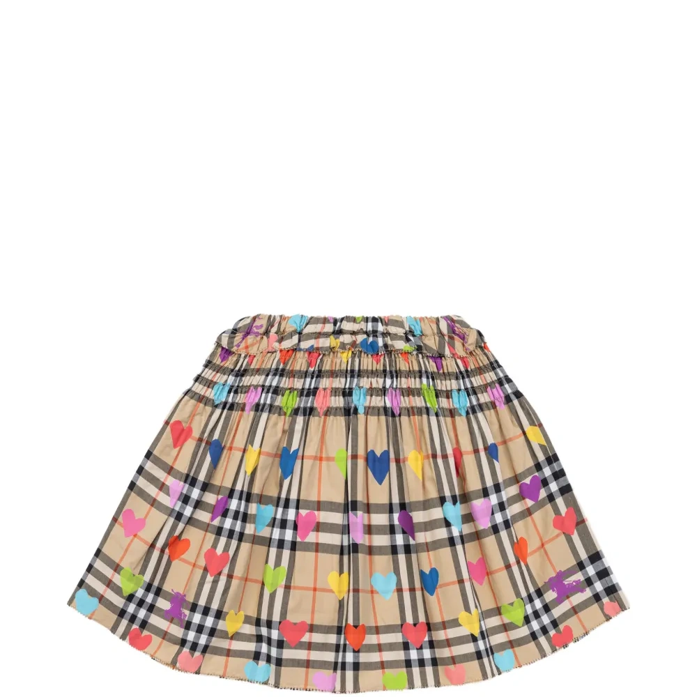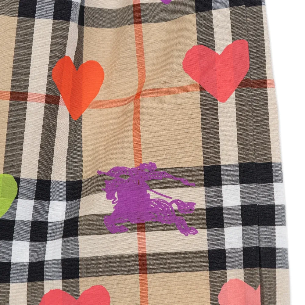 песочного цвета хлопковые шорты в клетку с сердечным мотивом и эластичным поясом