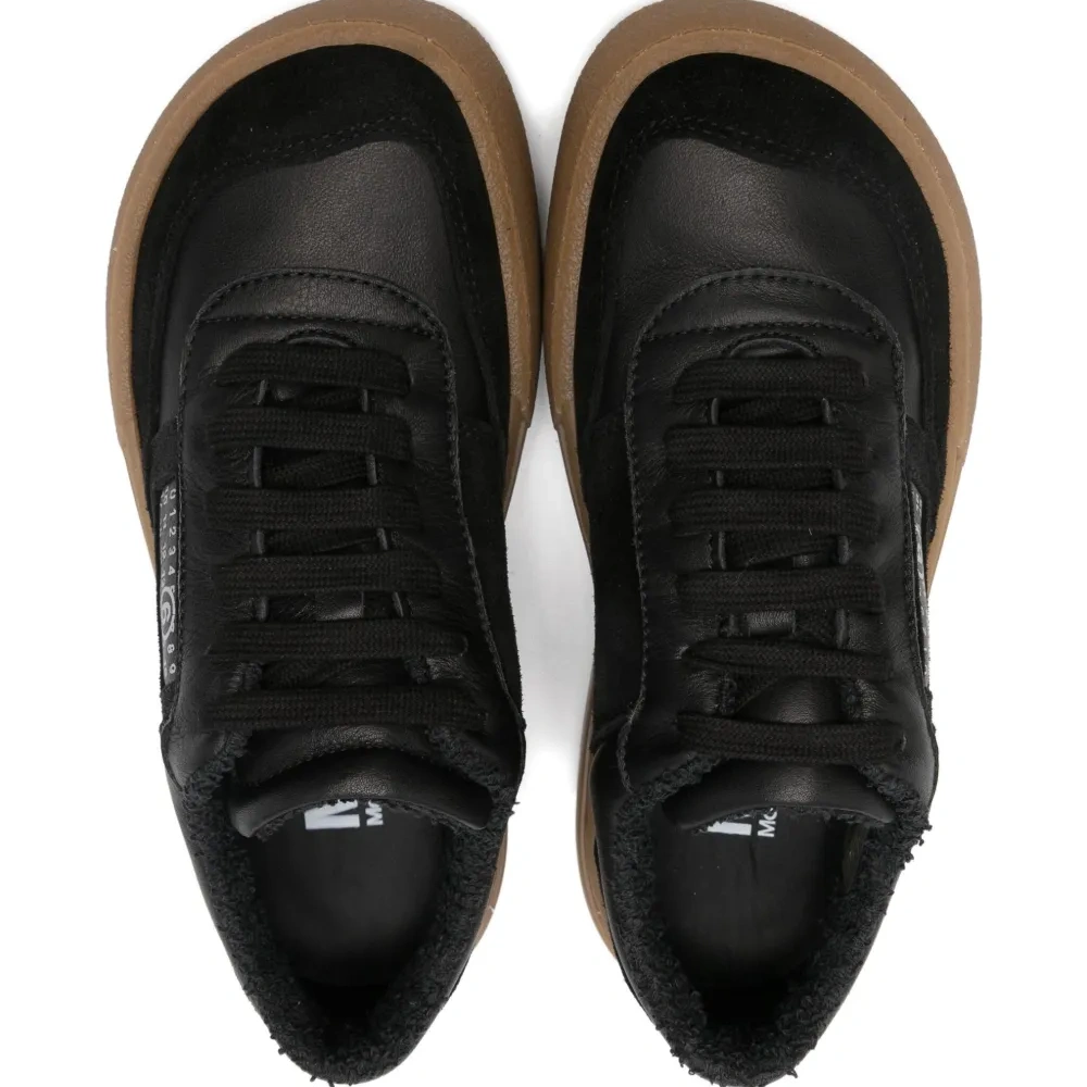черный многоуровневый дизайн круглый нос застежка на шнуровке спереди плоская резиновая подошва фирменный мотив с числами